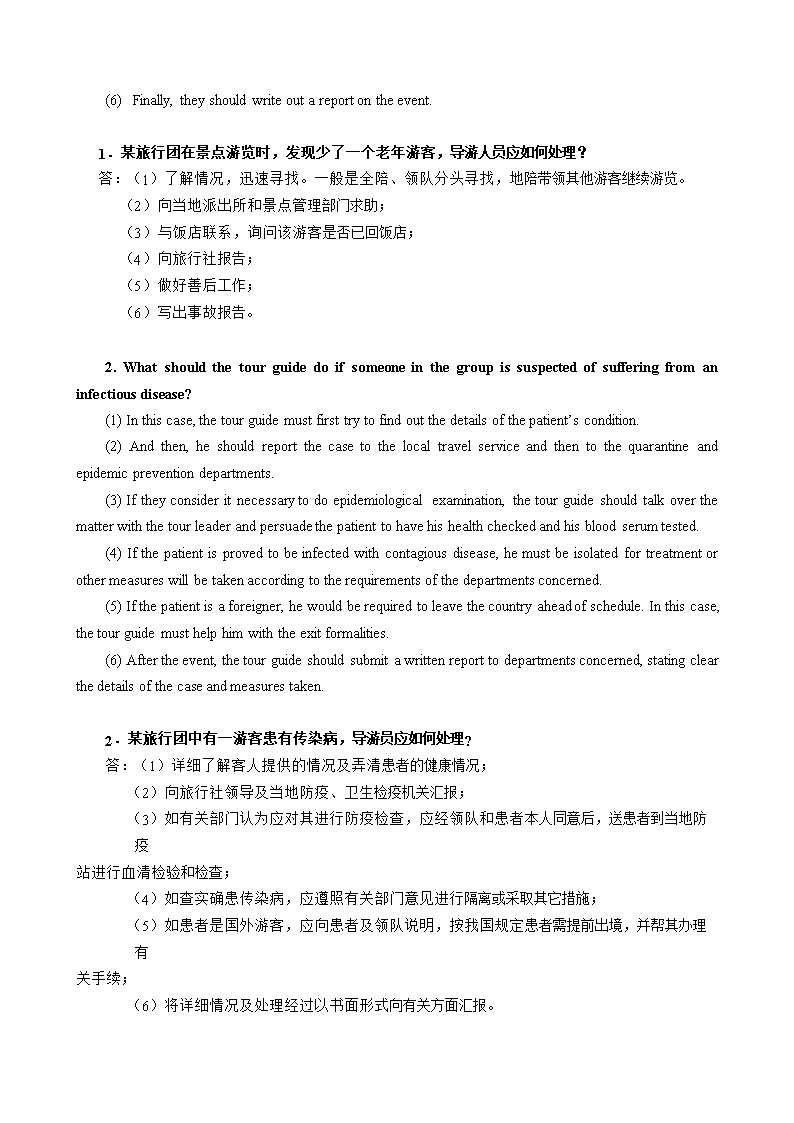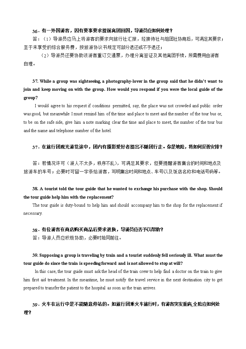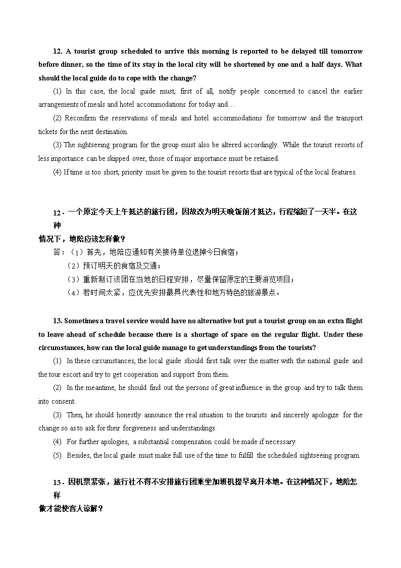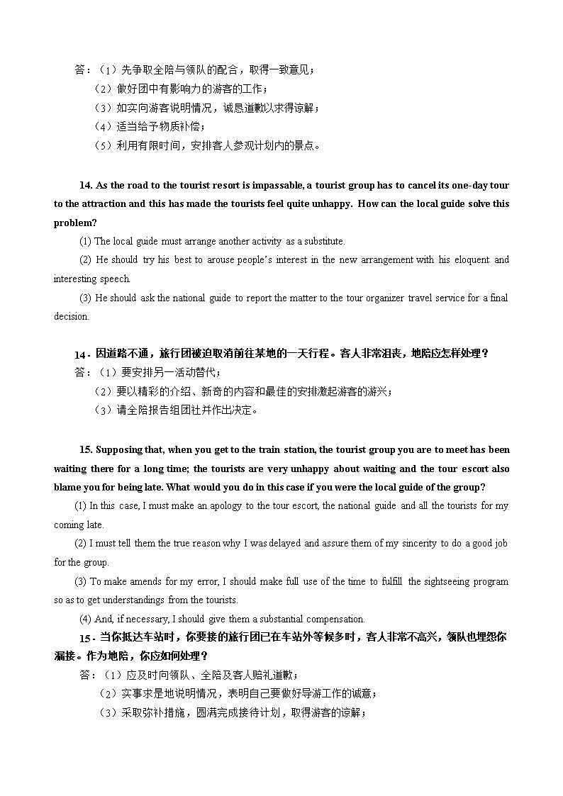 2023年山东导游资格考试导游服务能力考试题库-导游应变技能知识问答及参考答案160道