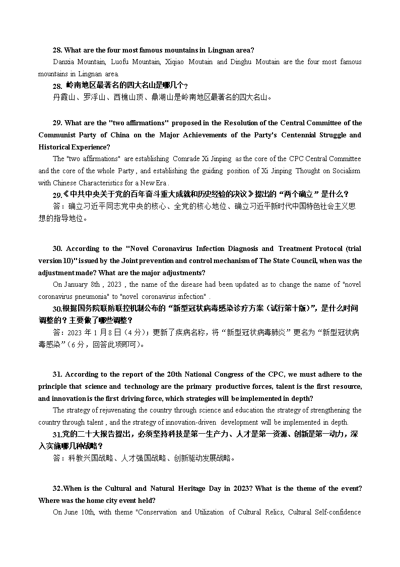 2023年四川导游资格现场考试题库-知识问答及参考答案200道