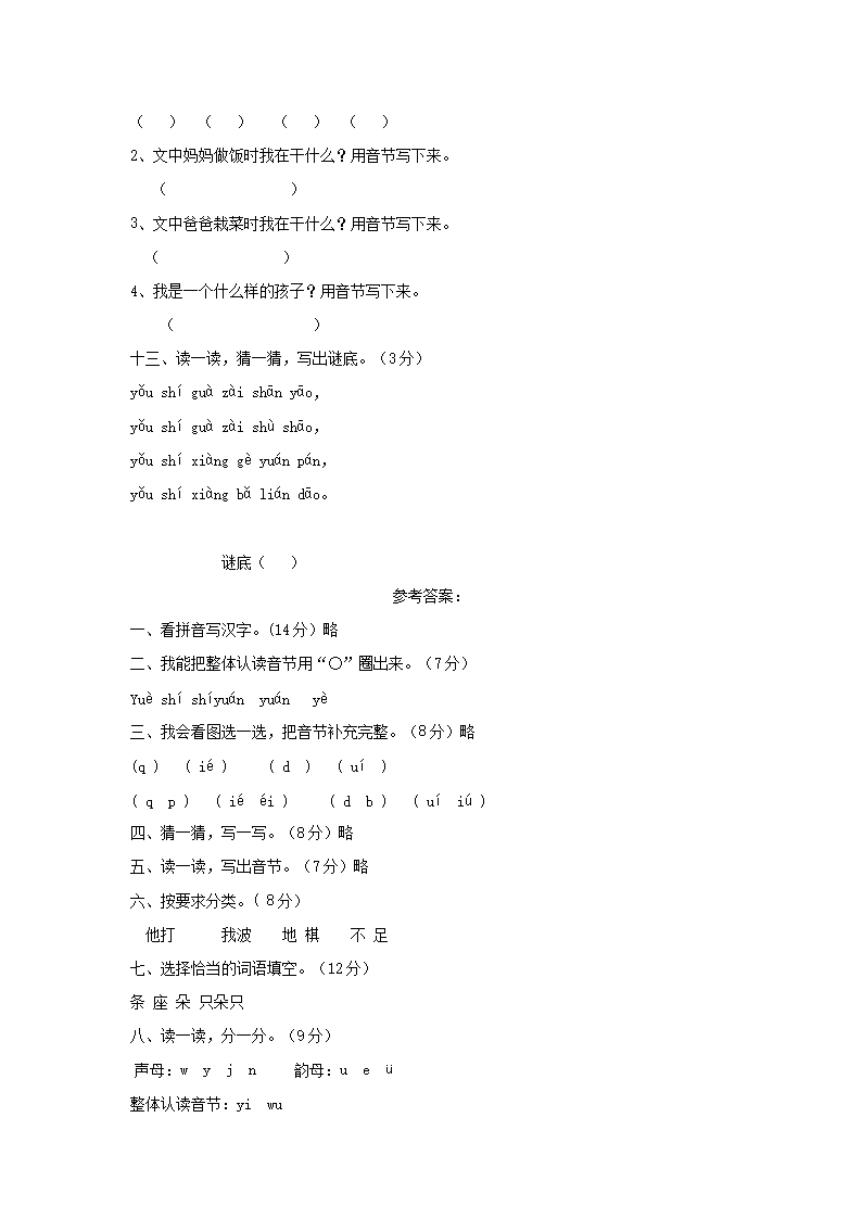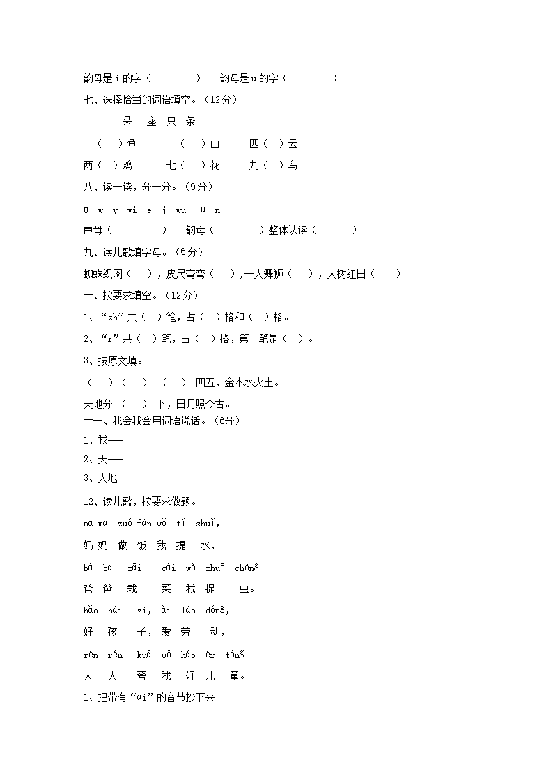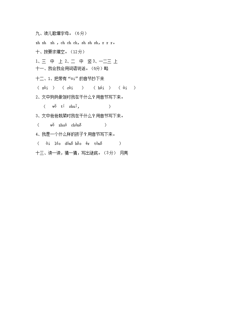 【文档名称】 上海小学一年级上册语文第二单元考试题及答案B卷(Word版).doc