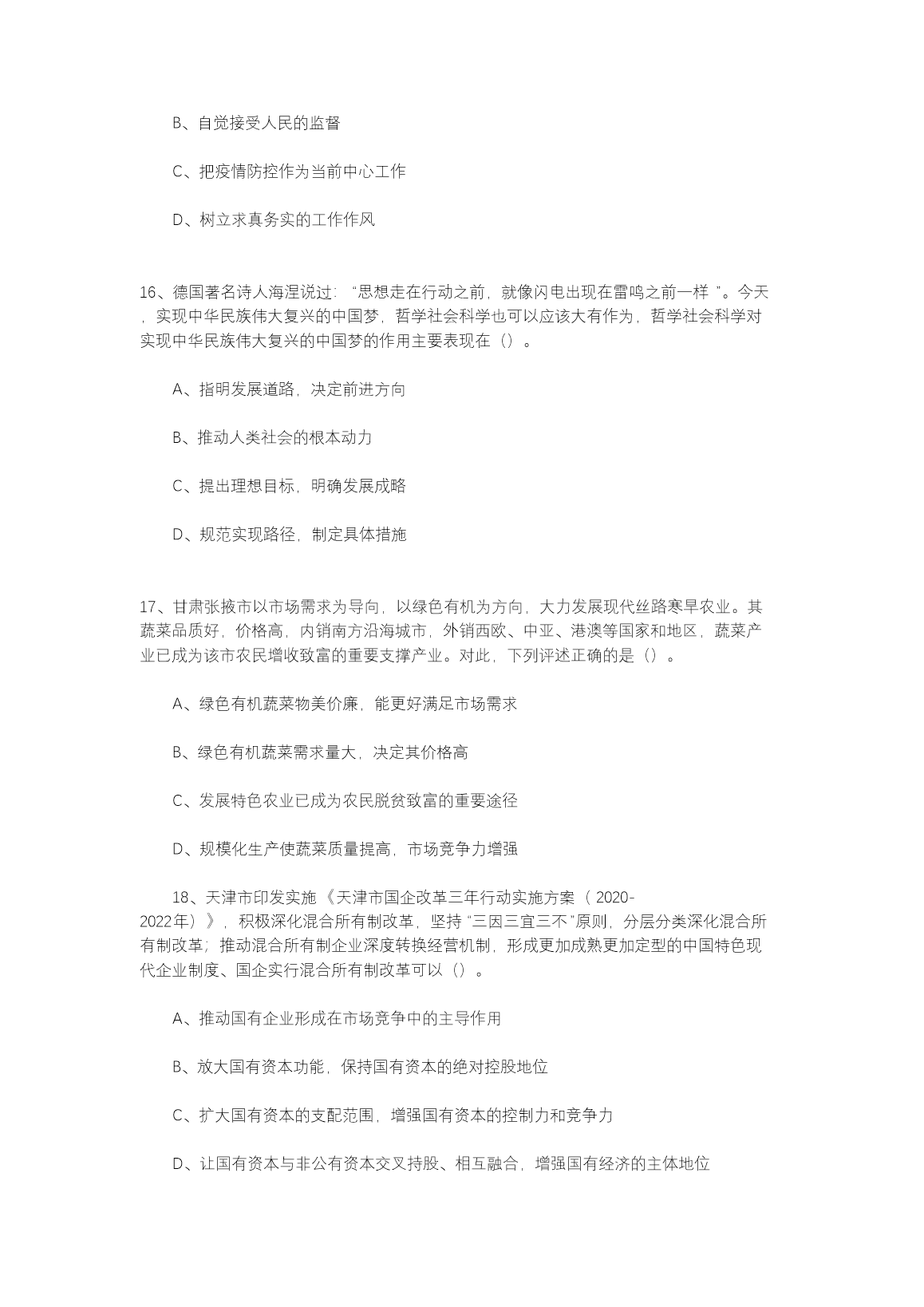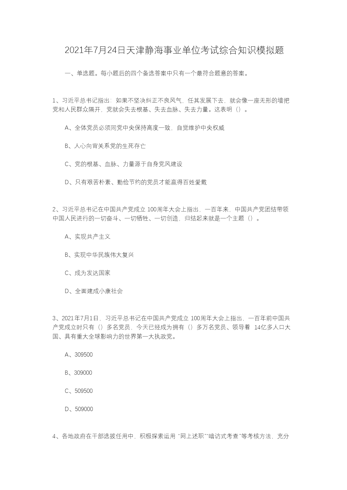 【文档名称】 2021年7月24日天津静海事业单位考试综合知识模拟题(Word版).doc