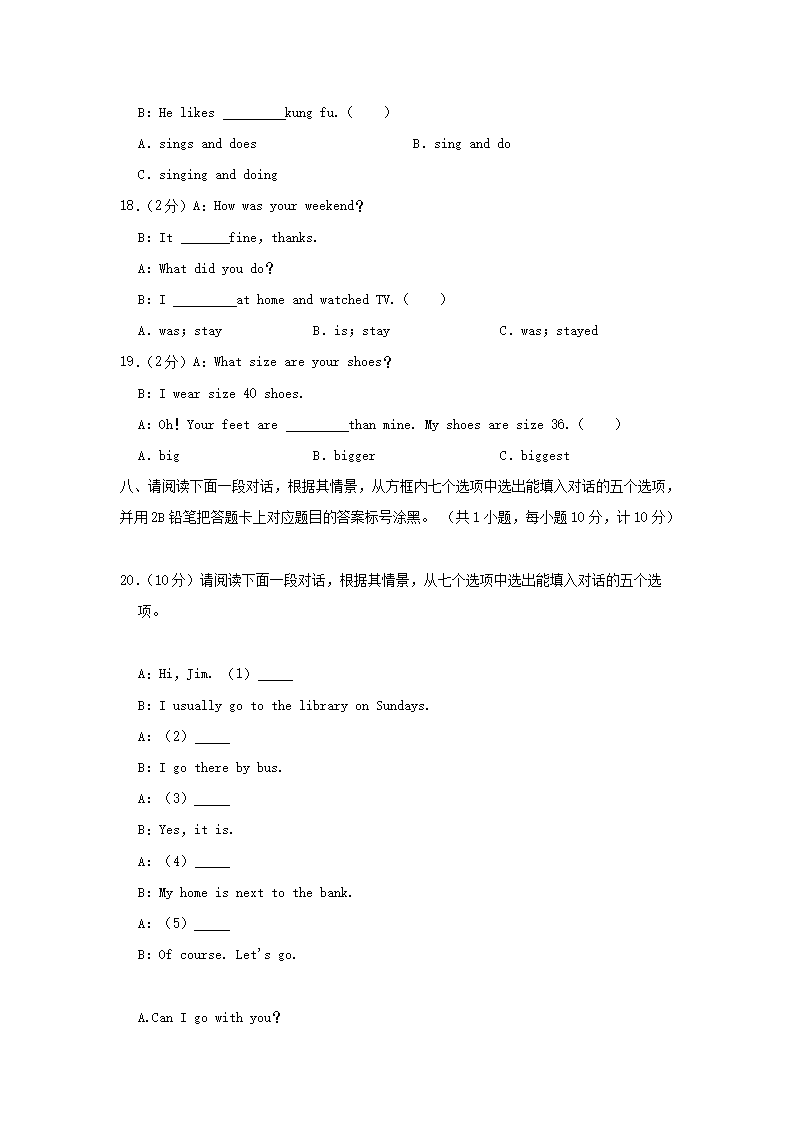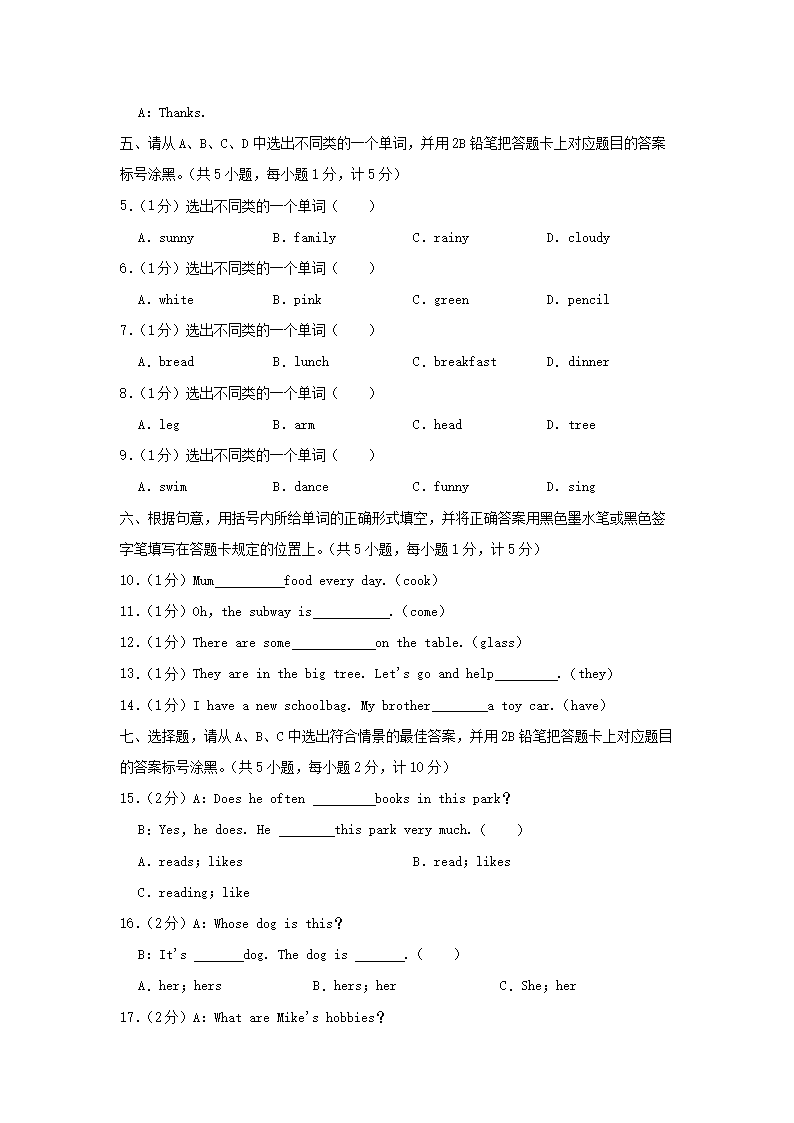 【文档预览】 无忧考网整理发布2020年贵州省铜仁市小升初英语真题及答案解析(Word版),前五页预览如下: