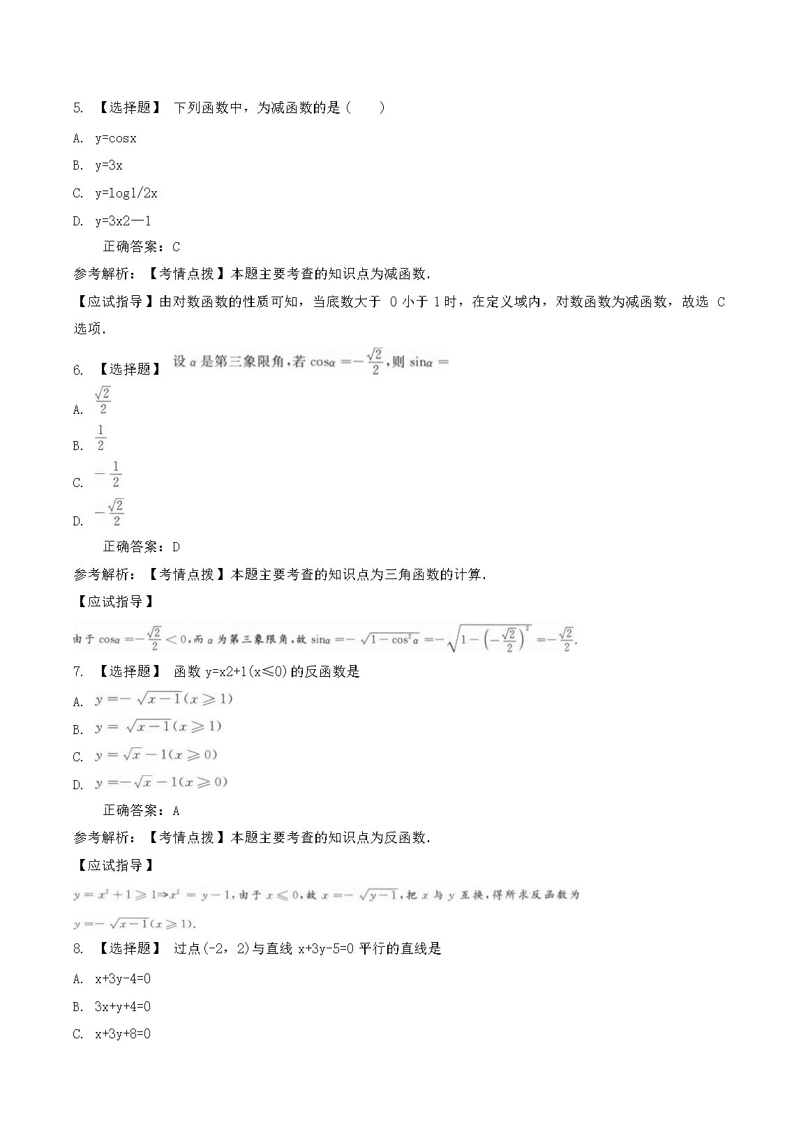 【文档预览】 无忧考网整理发布2022年重庆成人高考高起点数学(理)真题及答案(Word版),前五页预览如下:
