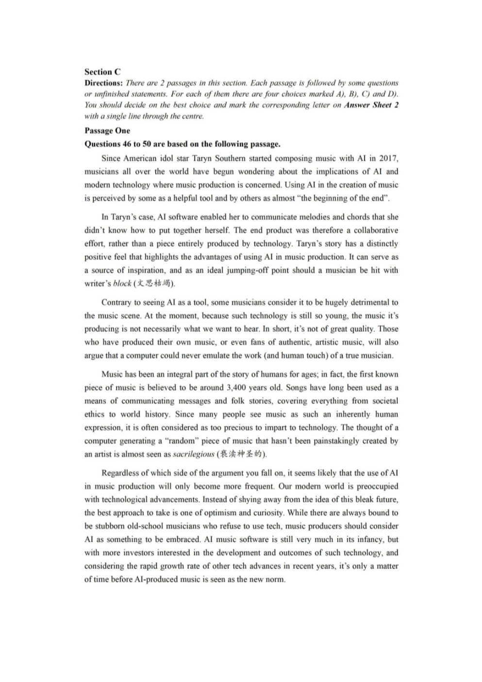 【文档名称】 2022年6月英语六级真题及答案-第2套(图片版).doc