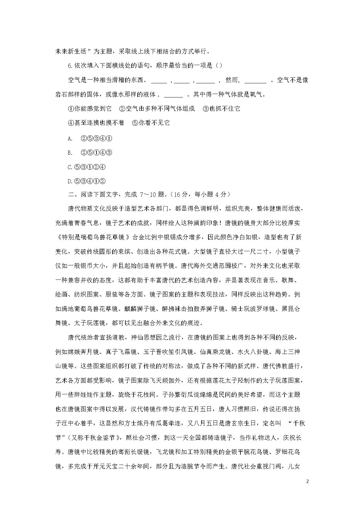 【文档名称】 2022年浙江成人高考高起点语文真题及答案(Word版).doc