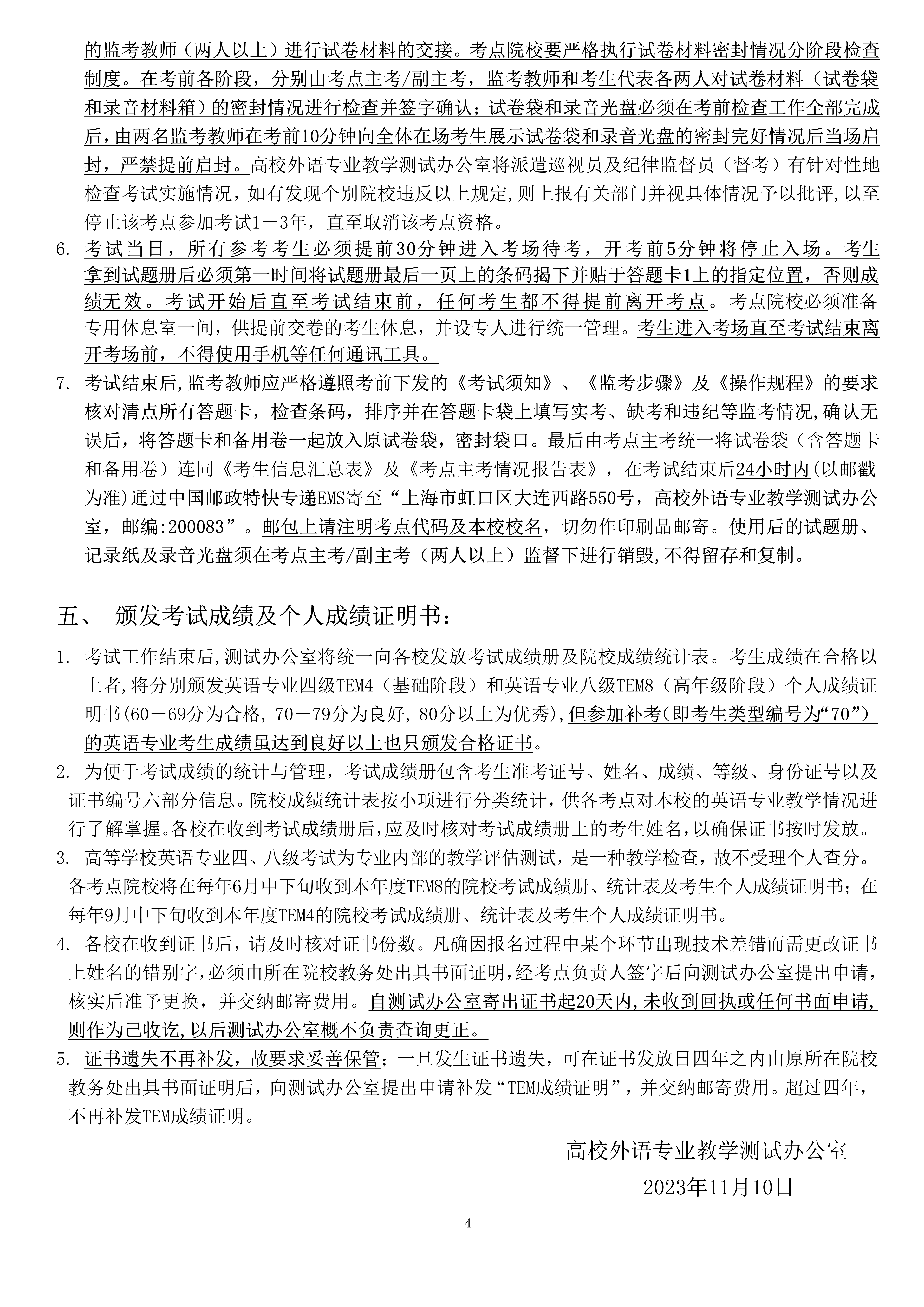 2024年高等学校英语专四专八报考须知[各考点2023年11