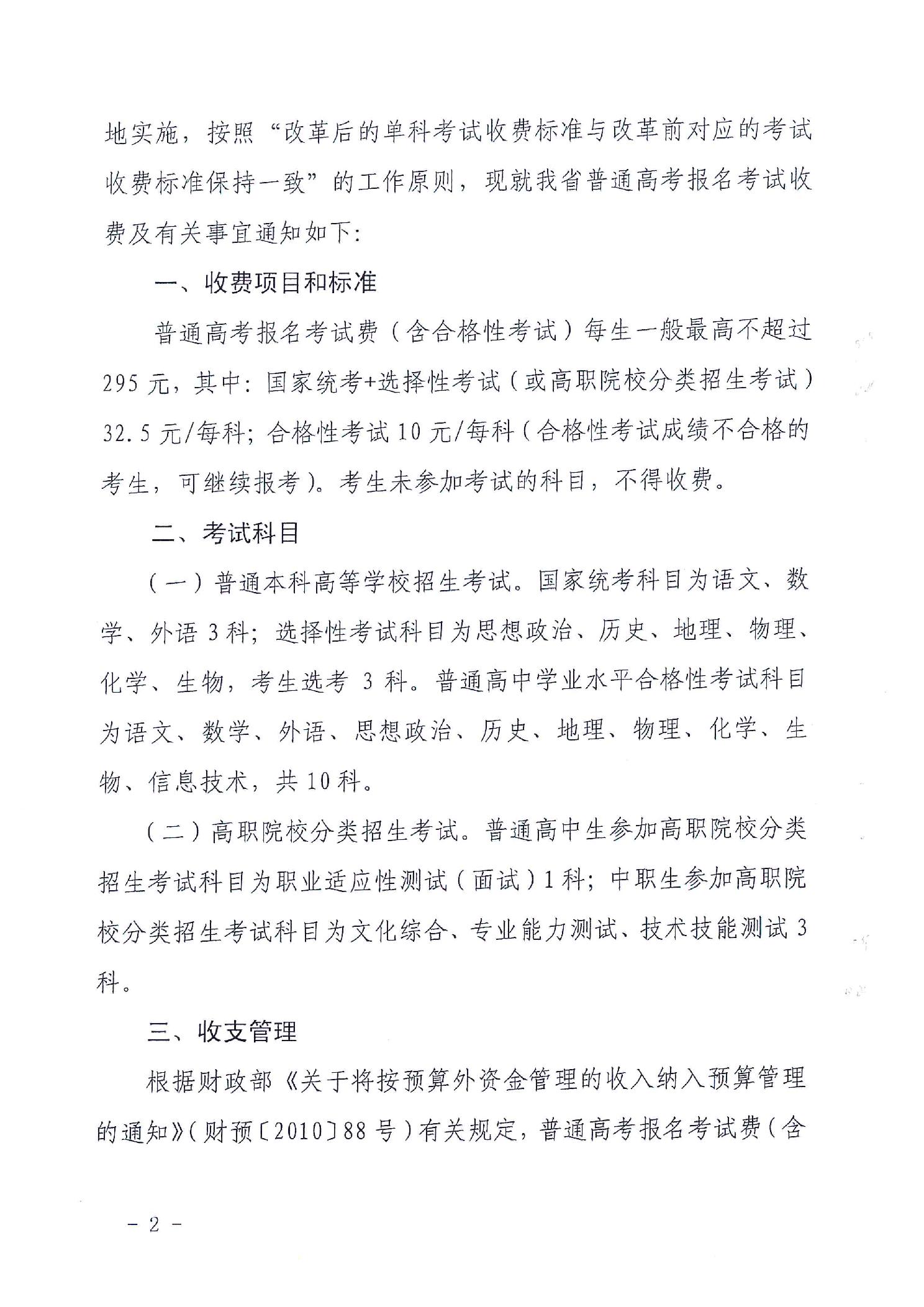 关于贵州省普通高考报名考试收费及有关事宜的通知