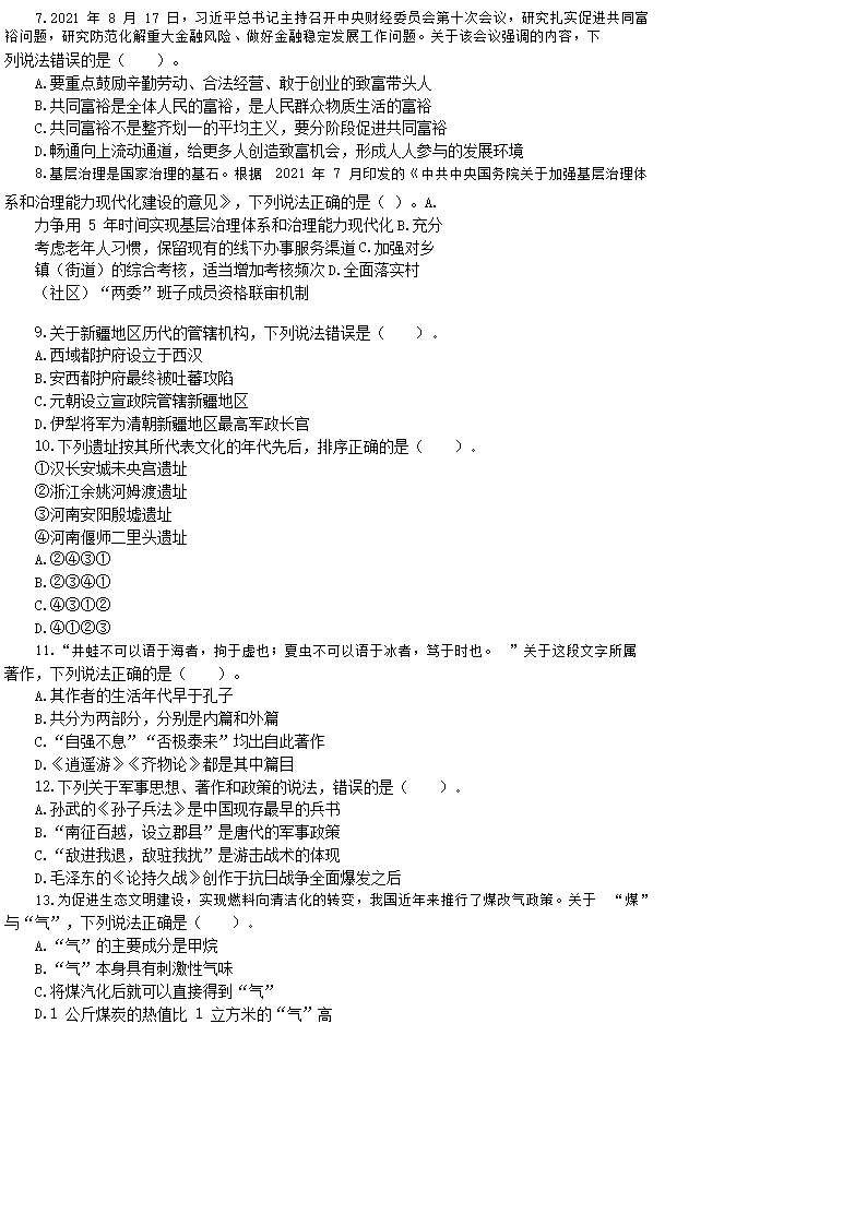 【文档名称】 2021年10月23日内蒙古事业单位联考职业能力倾向测验A类真题及答案解析(Word版).doc