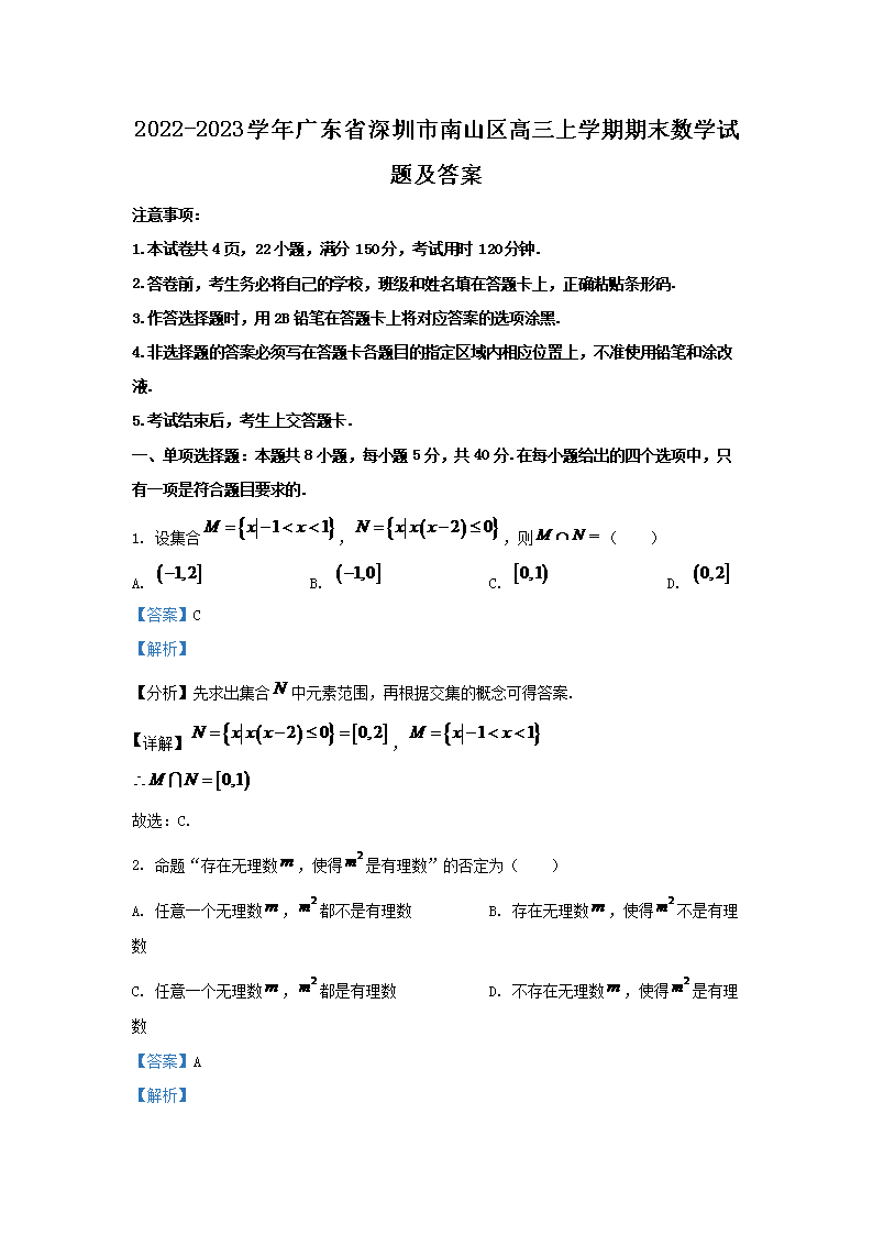 【文档名称】 2022-2023学年广东省深圳市南山区高三上学期期末数学试题及答案(Word版).doc