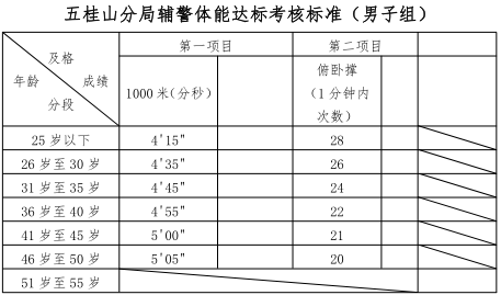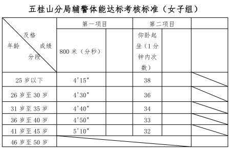 3.体能测试:体能测试不在总成绩体现,考生测试完毕后当场评分,并向考生宣布测试成绩,体能测试未达标者不予录用。体能测试项目男性为1000米跑、俯卧撑,女性为800米跑、仰卧起坐(具体体能测试标准见附件4),体能测试项目须全部合格方可进入下一环节。