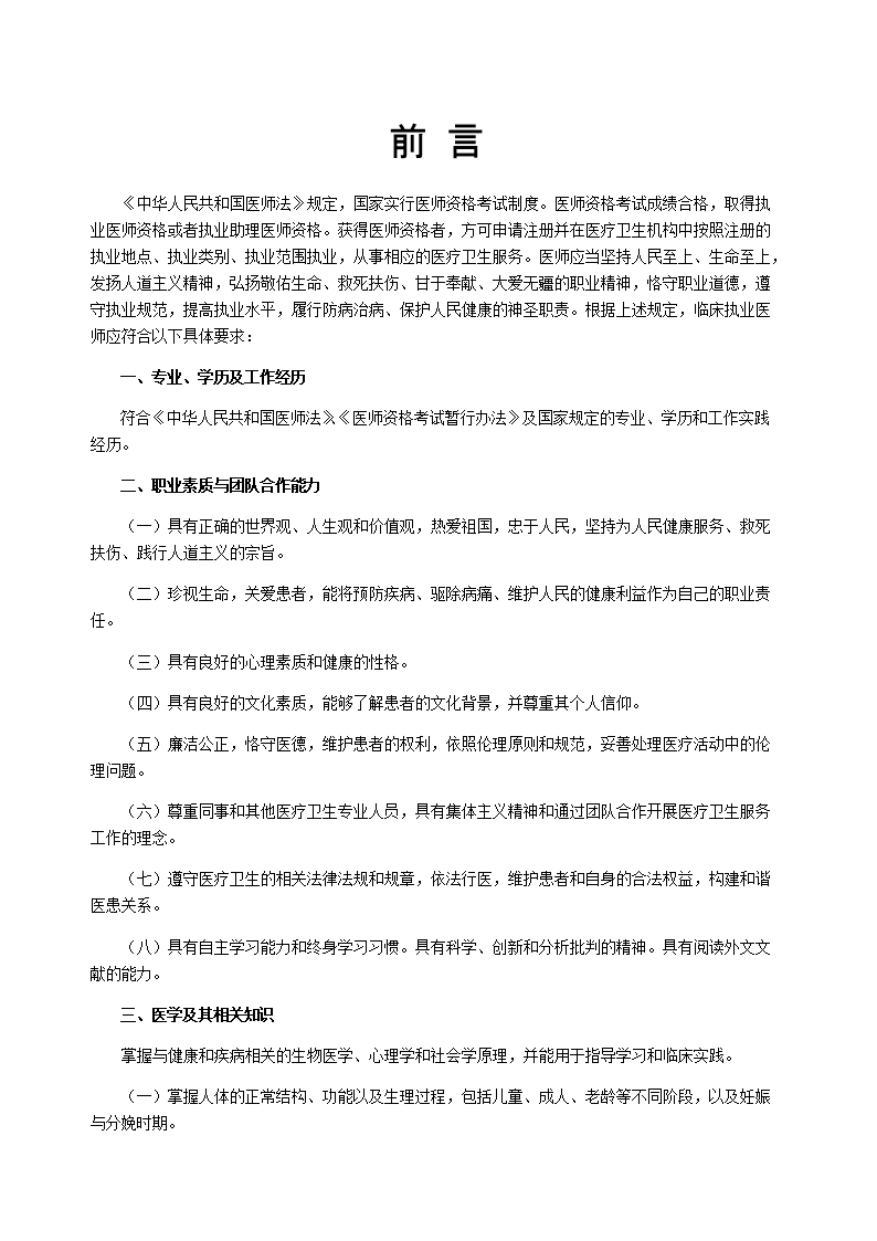 国家卫生健康委员会医师资格考试委员会关于印发2024年版临床、口腔、公共卫生执业(助理)医师和乡村全科执业助理医师《医师资格考试大纲》的通知