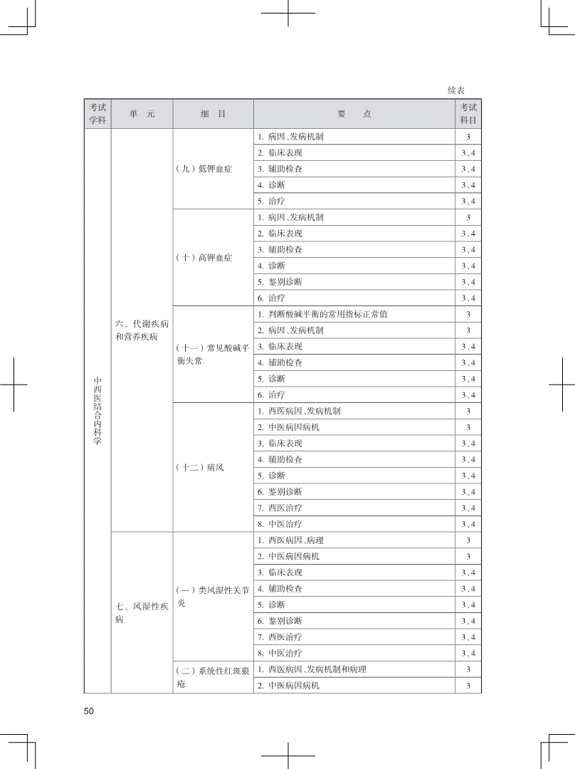 2024年卫生专业技术资格考试中医药类大纲-中西医结合内科学(中级)