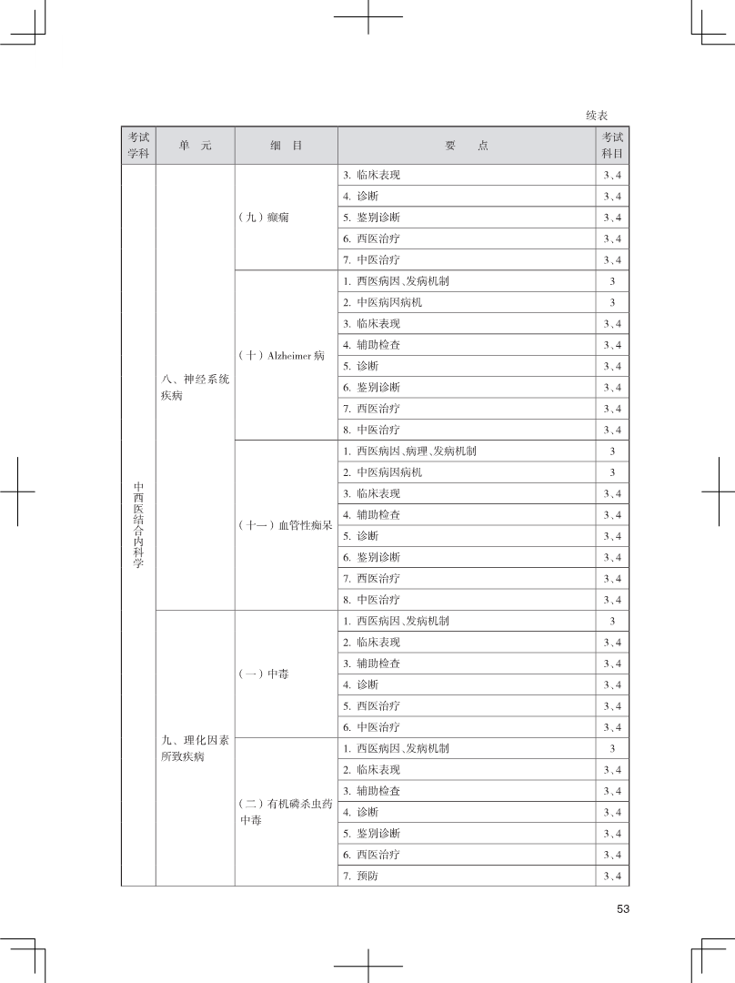 2024年卫生专业技术资格考试中医药类大纲-中西医结合内科学
