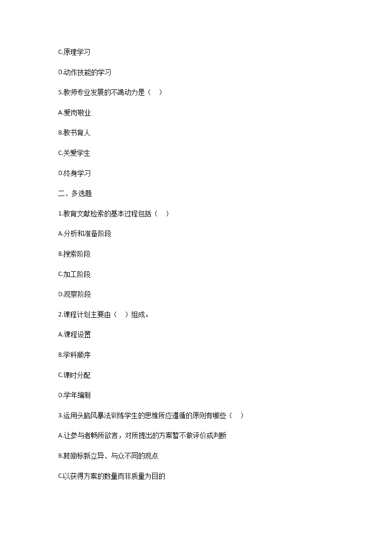 【文档名称】 2024年青海海北教师招聘考试模拟题及答案(Word版).doc
