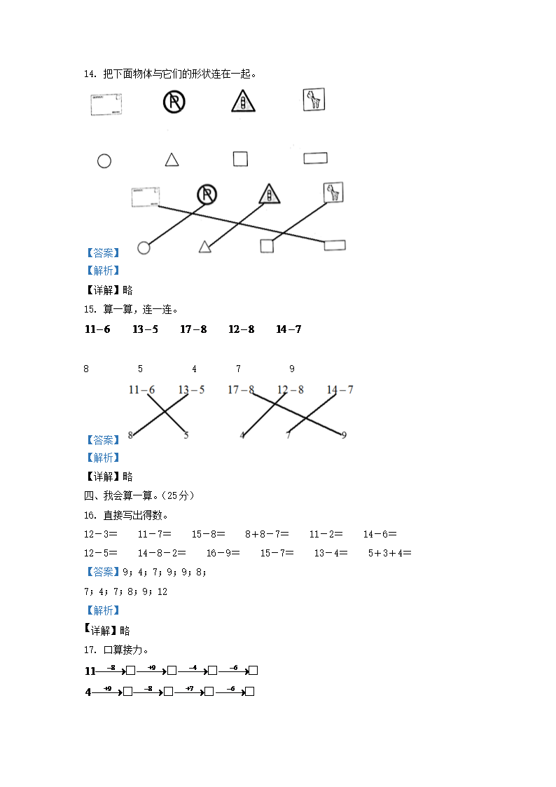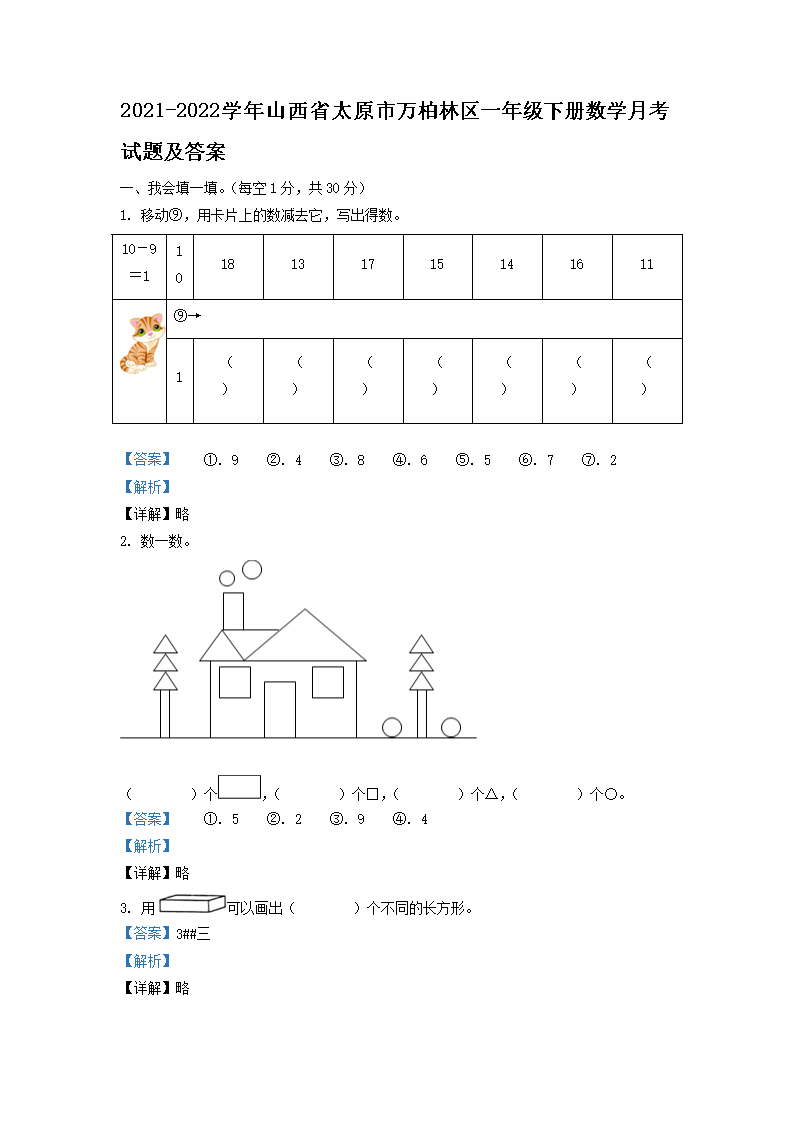 【文档名称】 2021-2022学年山西省太原市万柏林区一年级下册数学月考试题及答案(Word版).doc