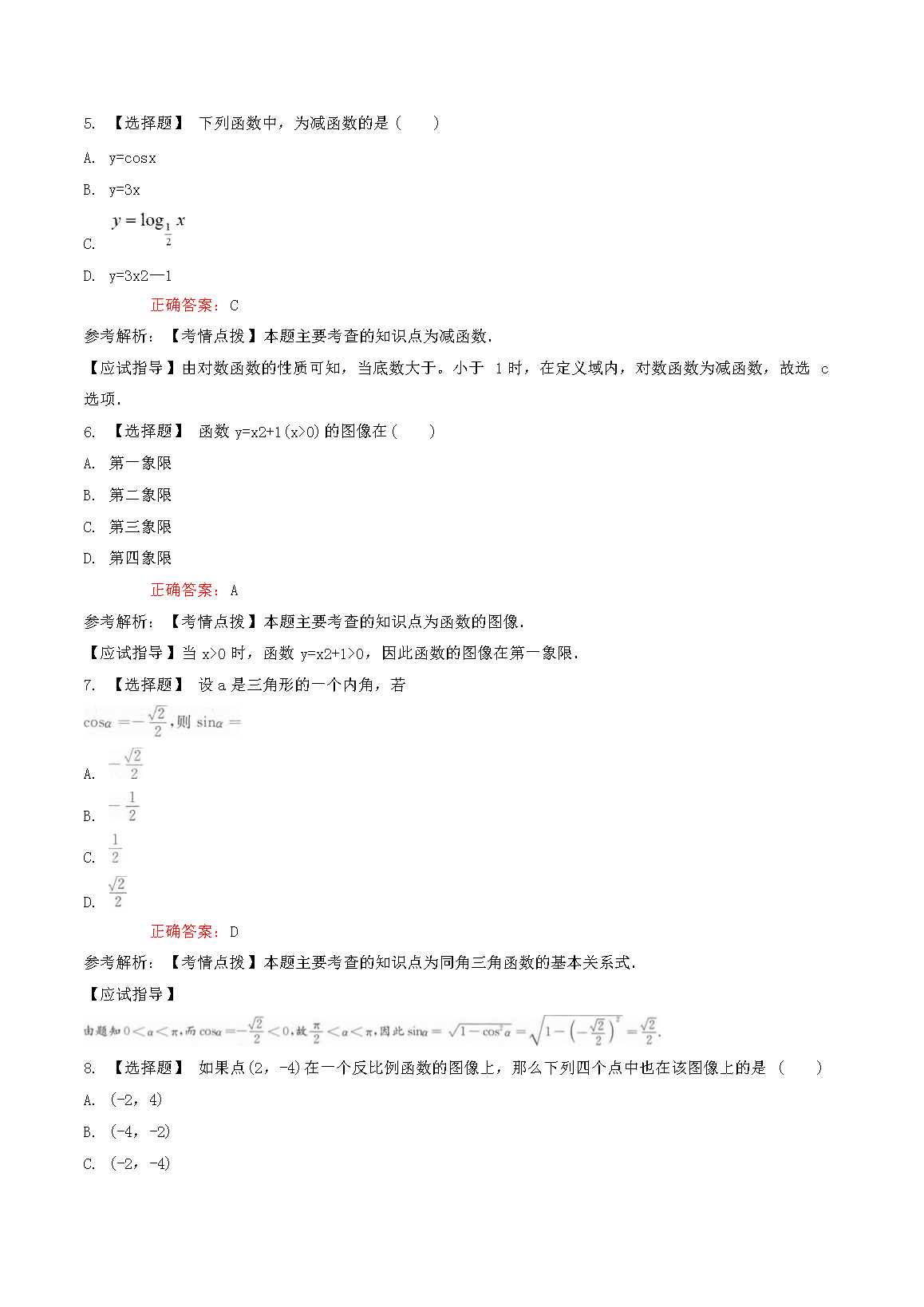 【文档预览】 无忧考网整理发布2022年江西成人高考高起点数学(文)真题及答案(Word版),前五页预览如下: