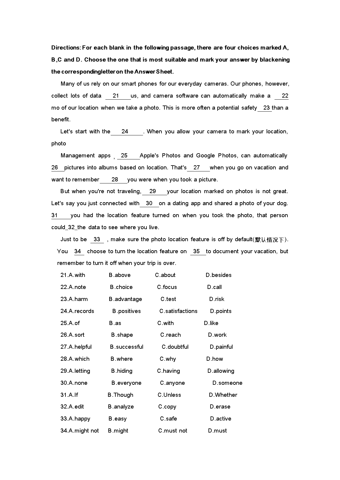 【文档名称】 2022年江苏成人高考专升本英语真题及答案(Word版).doc