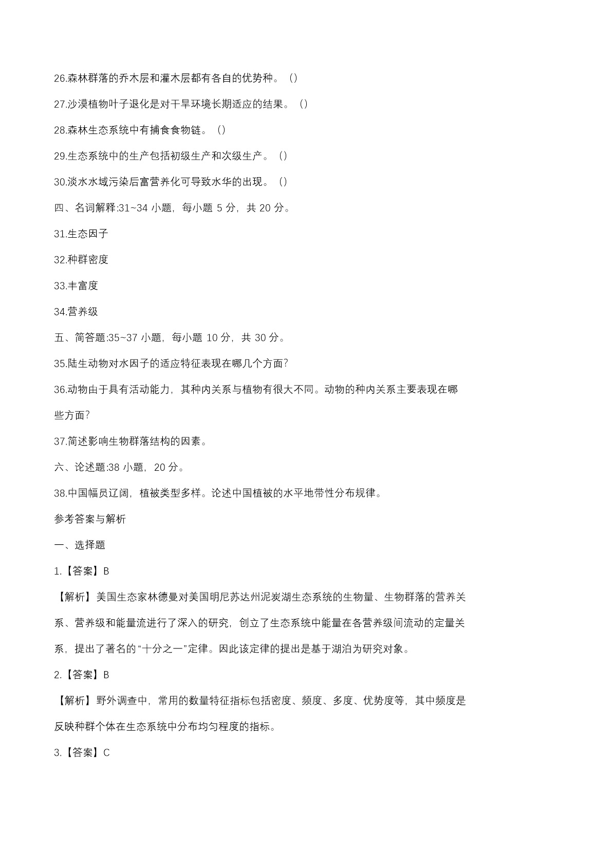 【文档名称】 2022年湖南成人高考专升本生态学基础真题及答案(Word版).doc