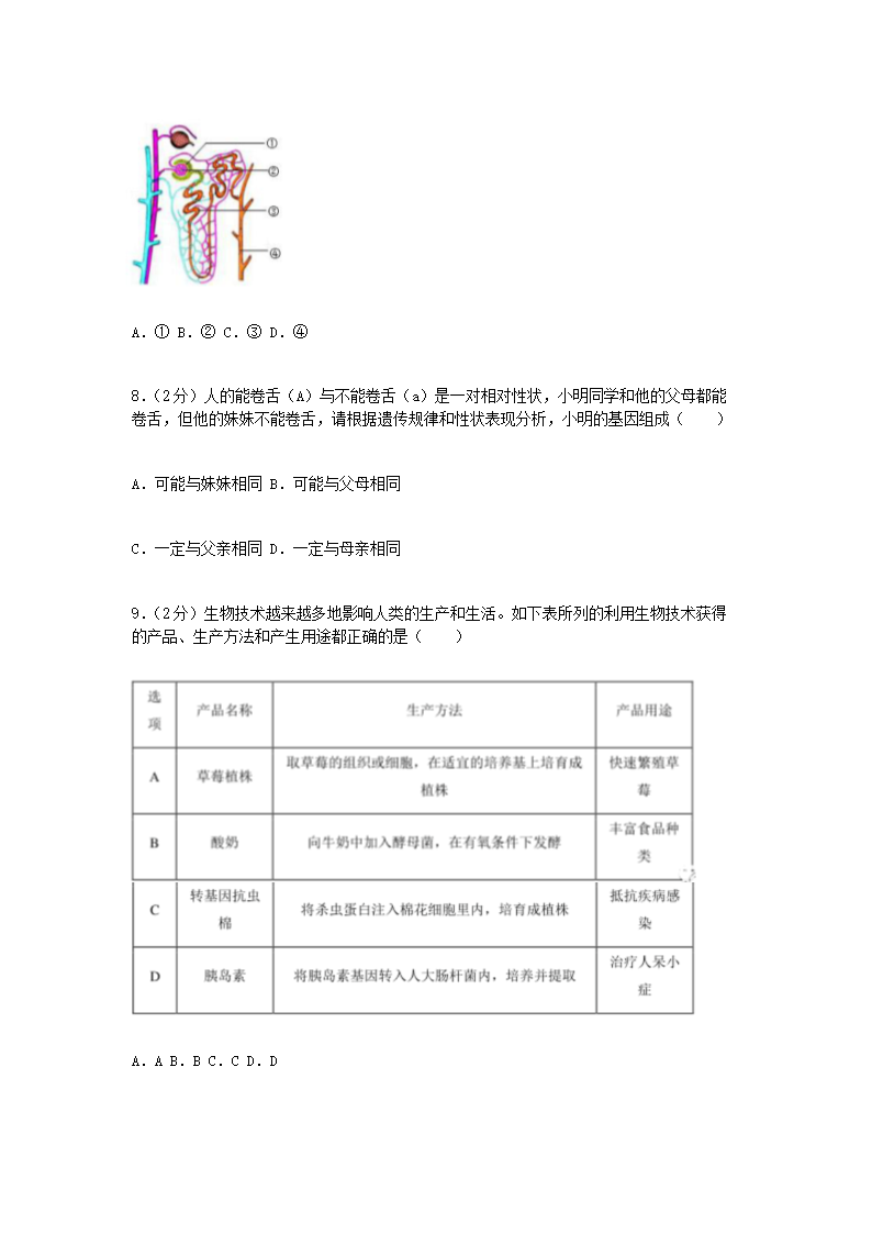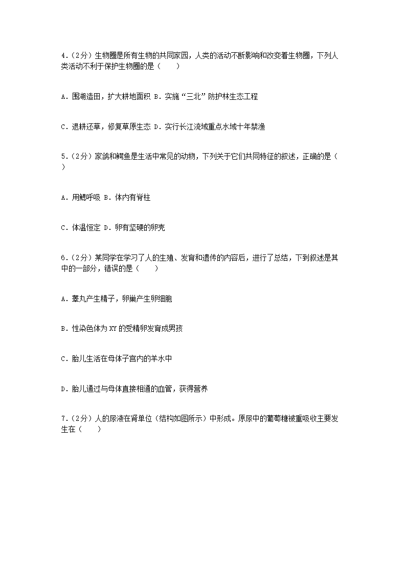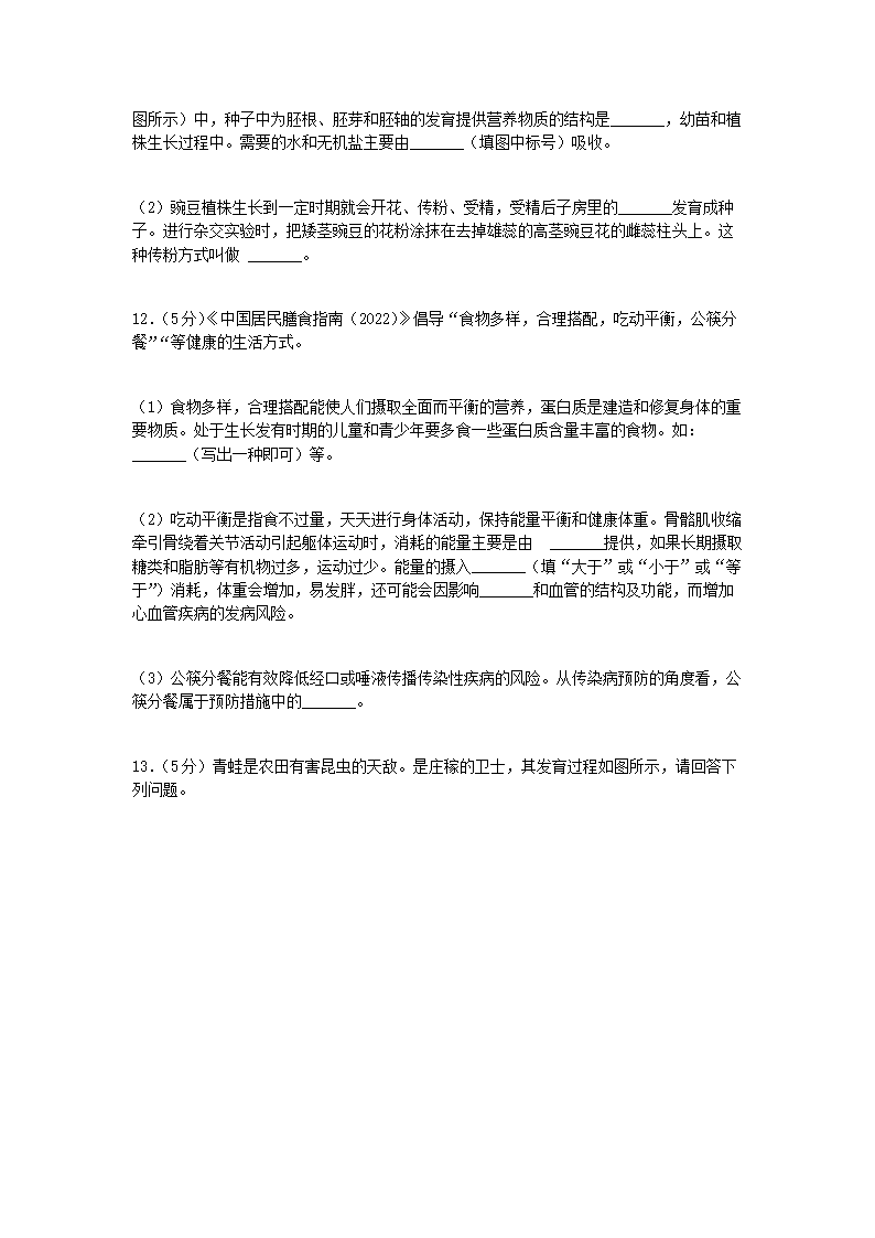 【文档名称】 2022年安徽宿州中考生物试题及答案(Word版).doc
