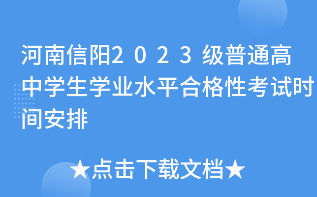 河南信阳2023级普通高中在校学生必须参加学业水平合格性考试。获得E等级或因故未参加学业水平考试的2022级学生,应参加相应学科的补考。