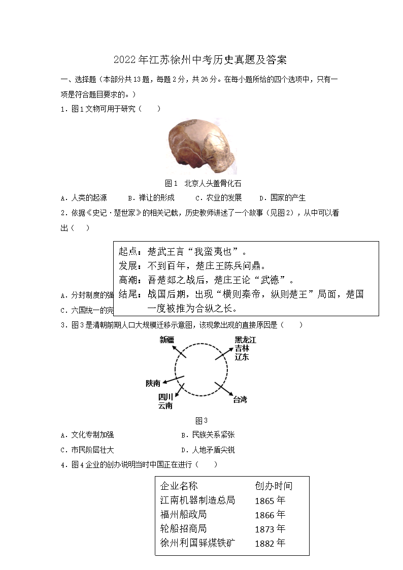 【文档名称】 2022年江苏徐州中考历史真题及答案(Word版).doc