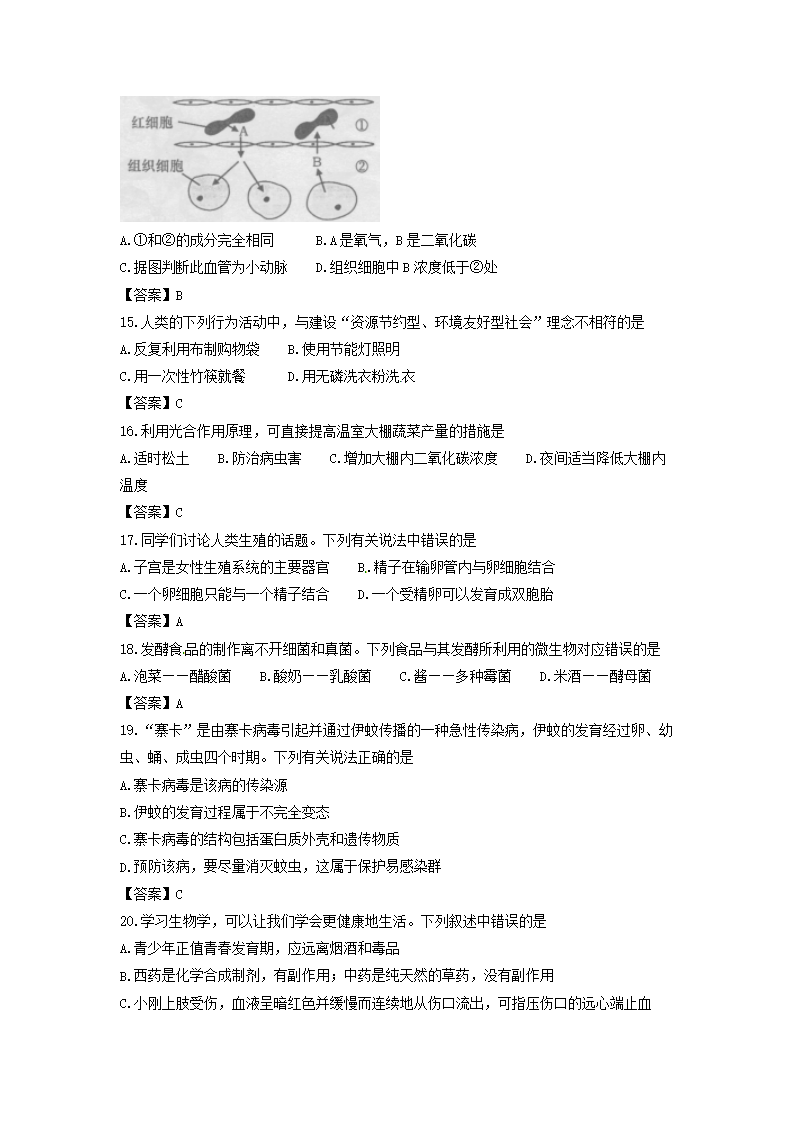 【文档名称】 2017年安徽宿州中考生物真题及答案(Word版).doc