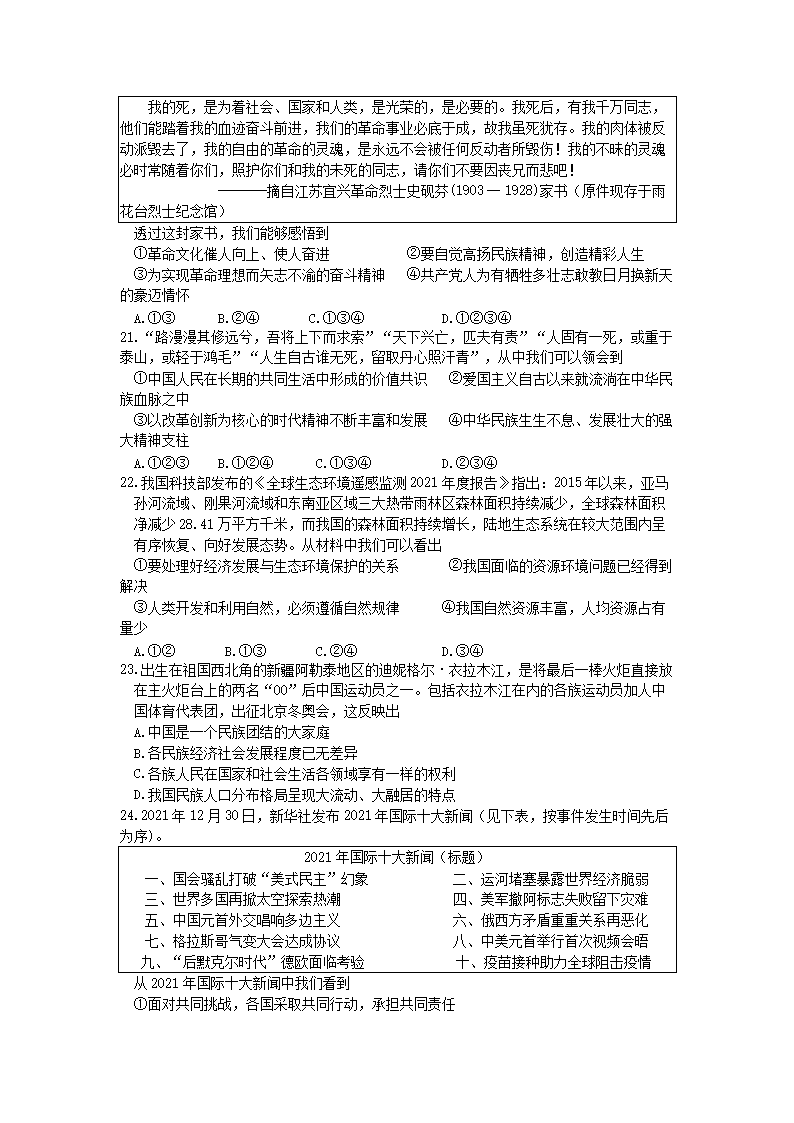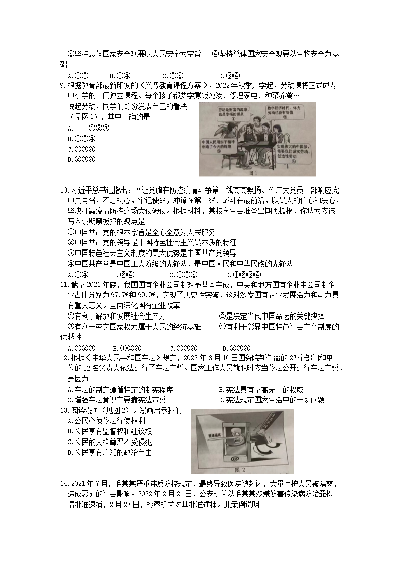 【文档名称】 2022年江苏无锡中考道德与法治真题及答案(Word版).doc