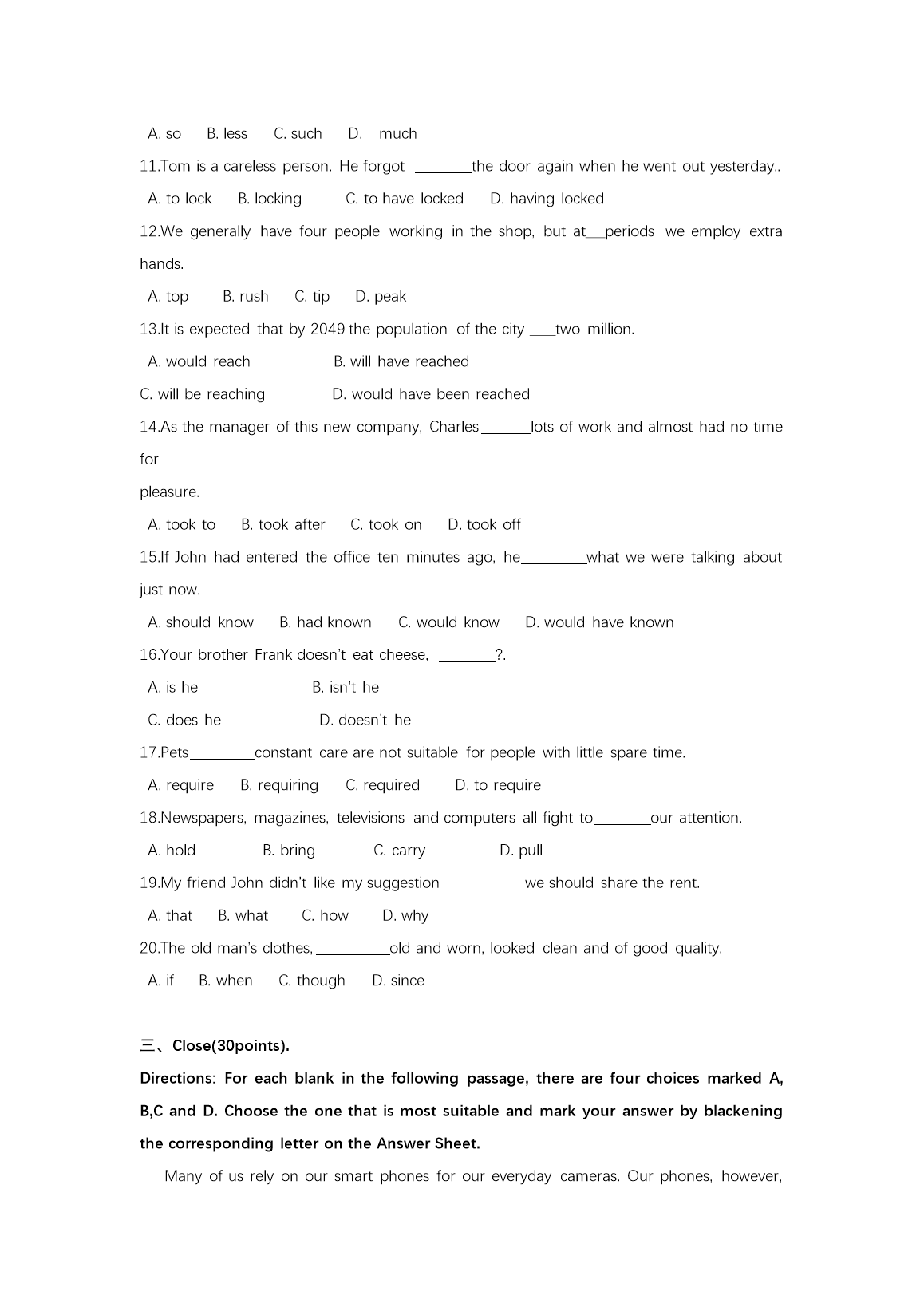 【文档名称】 2022年河南成人高考专升本英语真题及答案(Word版).doc