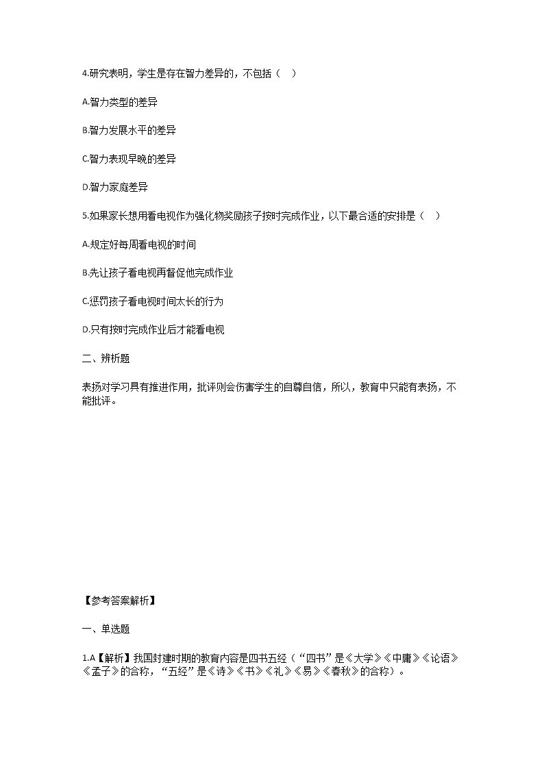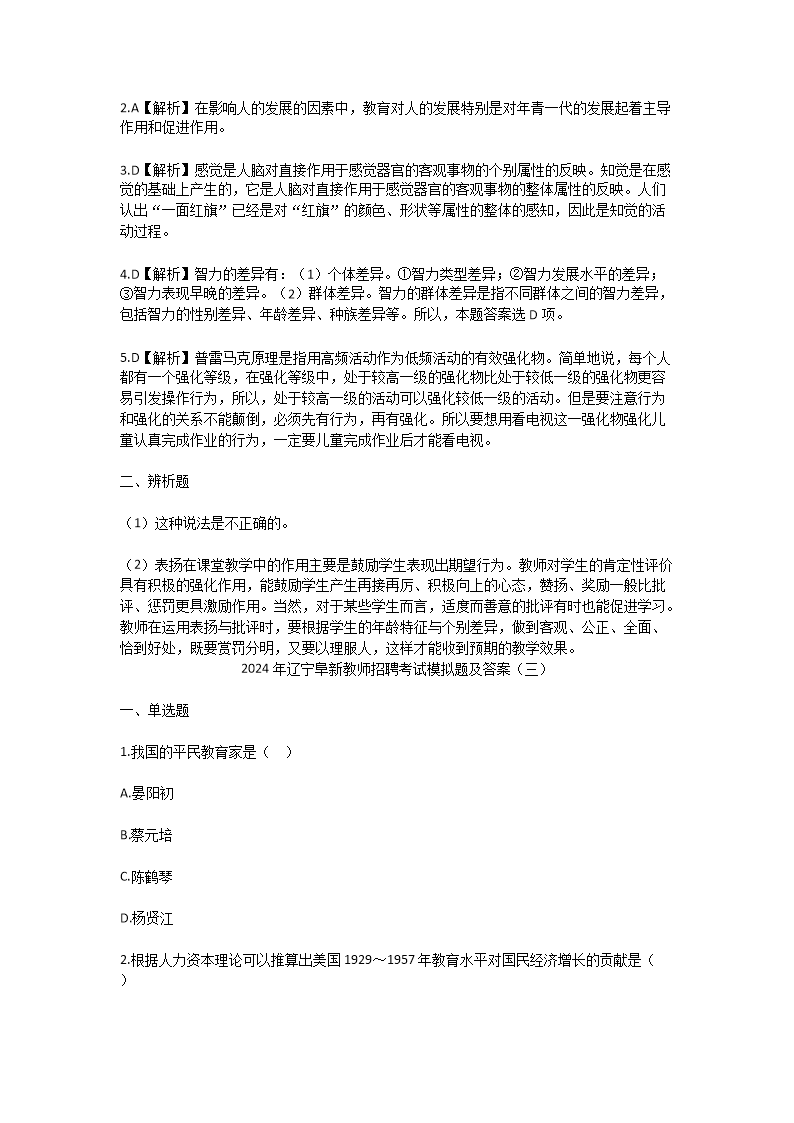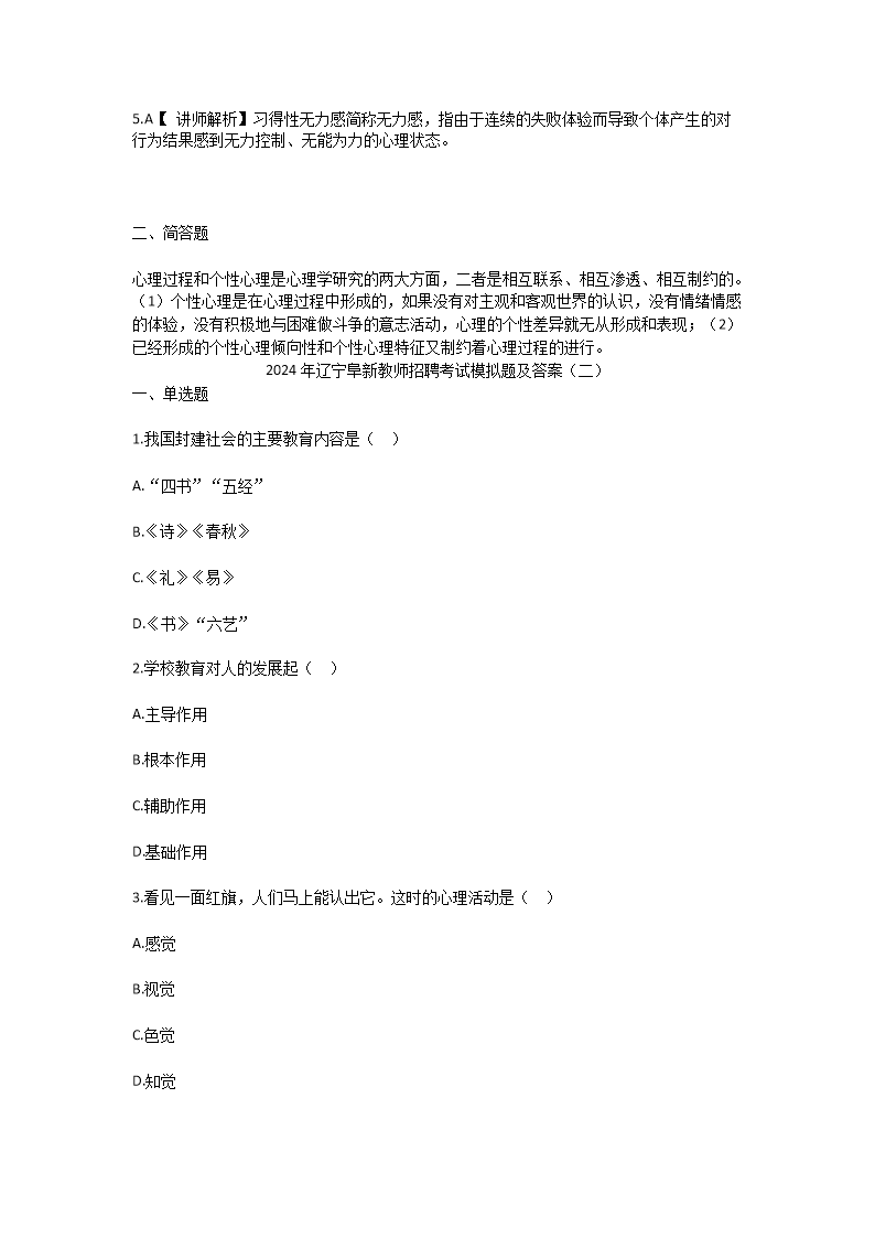【文档名称】 2024年辽宁阜新教师招聘考试模拟题及答案(Word版).doc