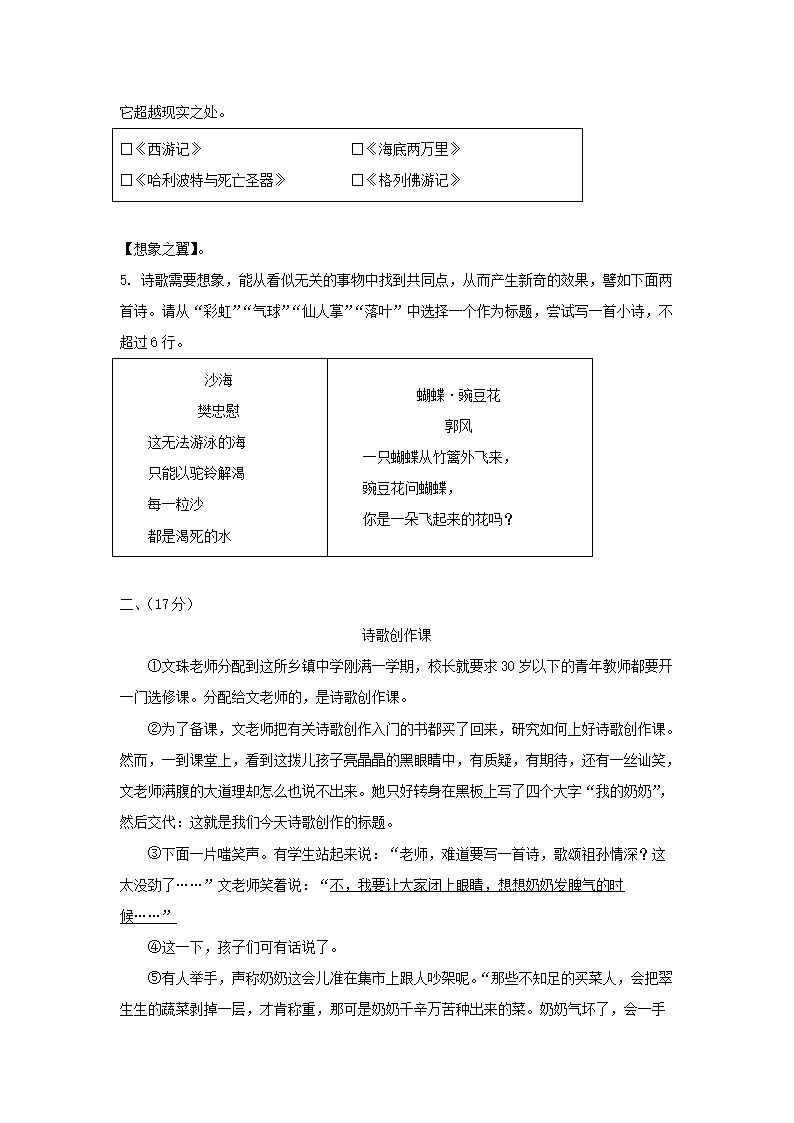 【文档预览】 无忧考网整理发布2023年浙江杭州中考语文真题及答案(Word版),前五页预览如下:
