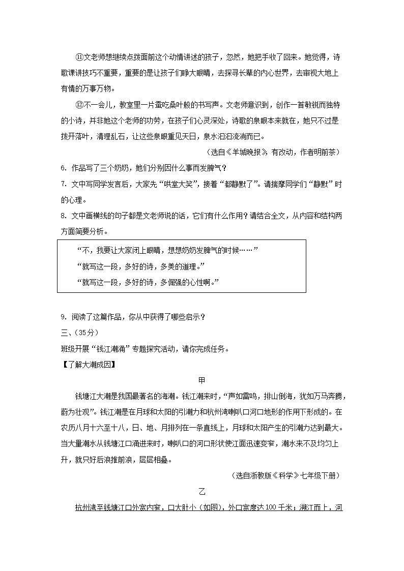 【文档名称】 2023年浙江杭州中考语文真题及答案(Word版).doc