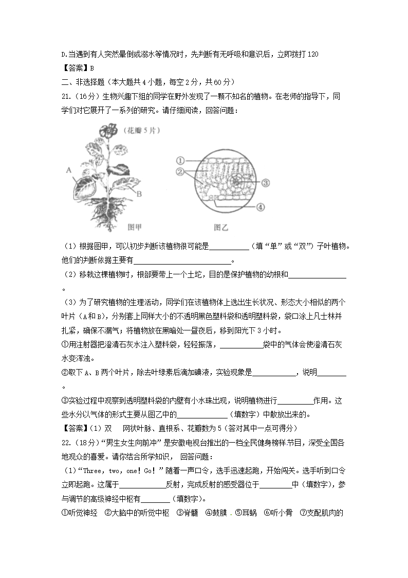 【文档预览】 无忧考网整理发布2017年安徽六安中考生物真题及答案(Word版),前五页预览如下:
