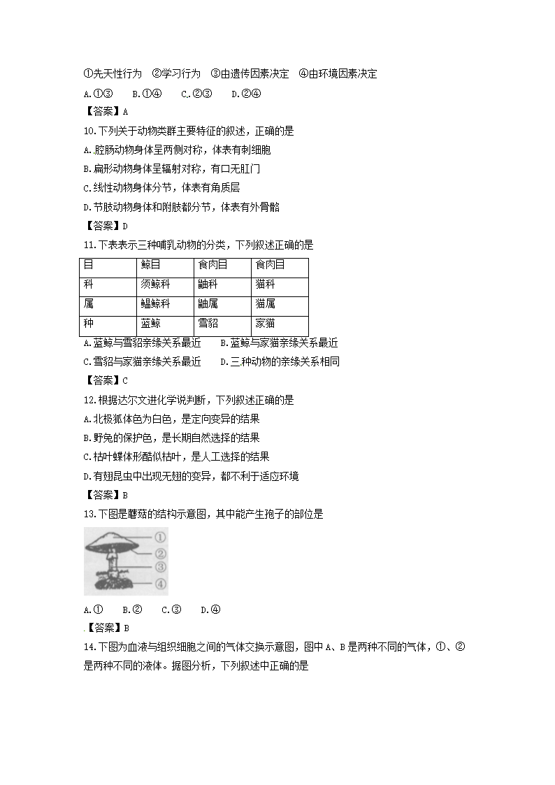 【文档名称】 2017年安徽六安中考生物真题及答案(Word版).doc