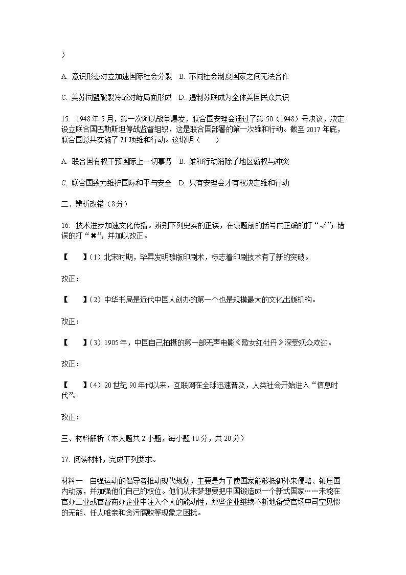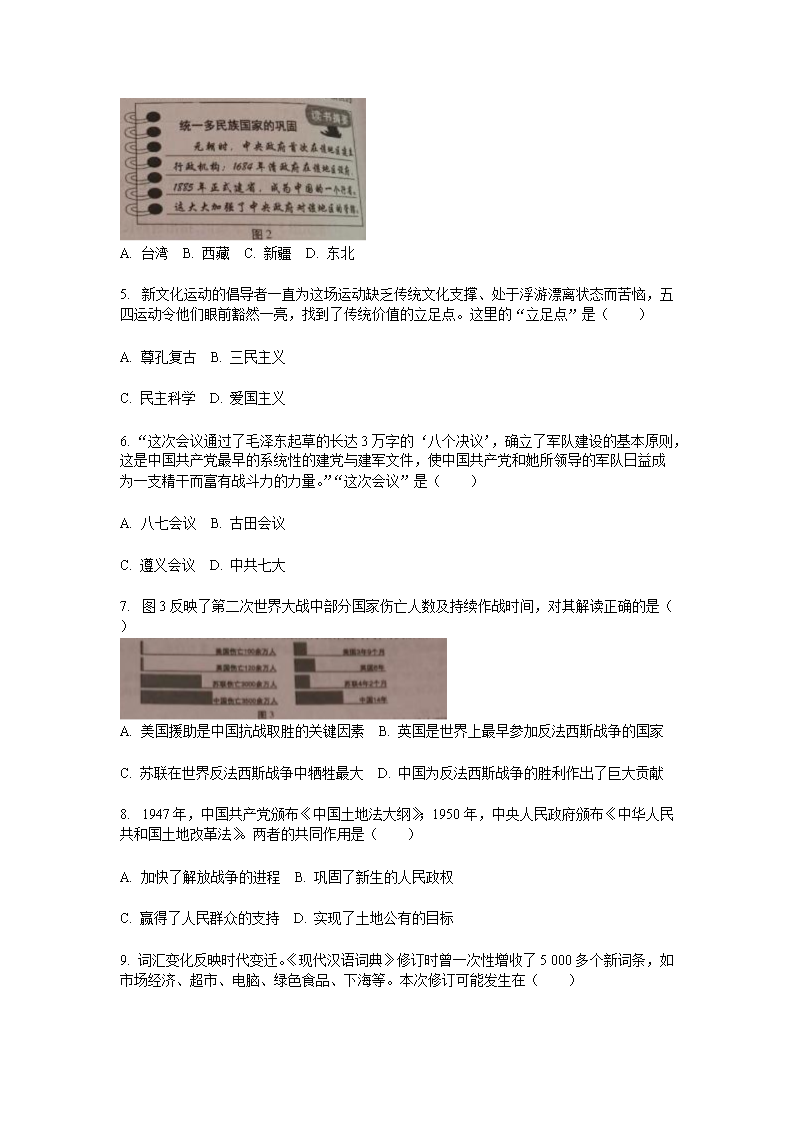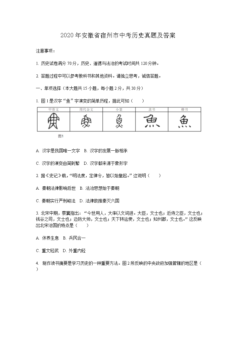 【文档名称】 2020年安徽省宿州市中考历史真题及答案(Word版).doc