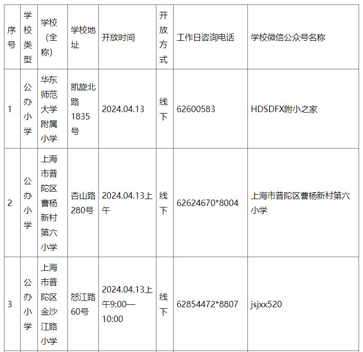 #】上海普陀区2024义务教育阶段学校校园开放日已公布,
