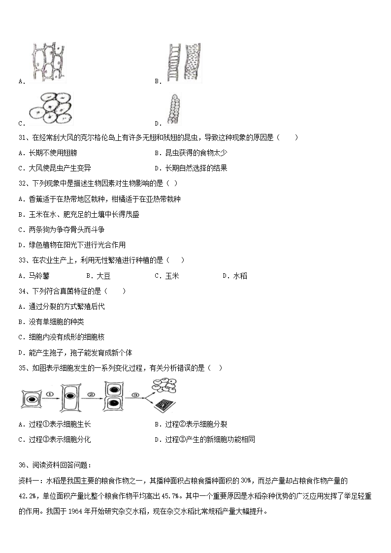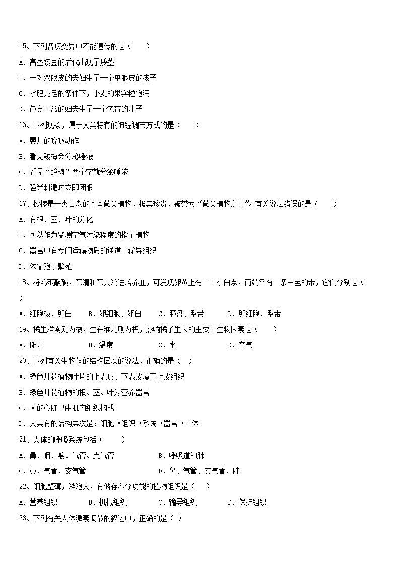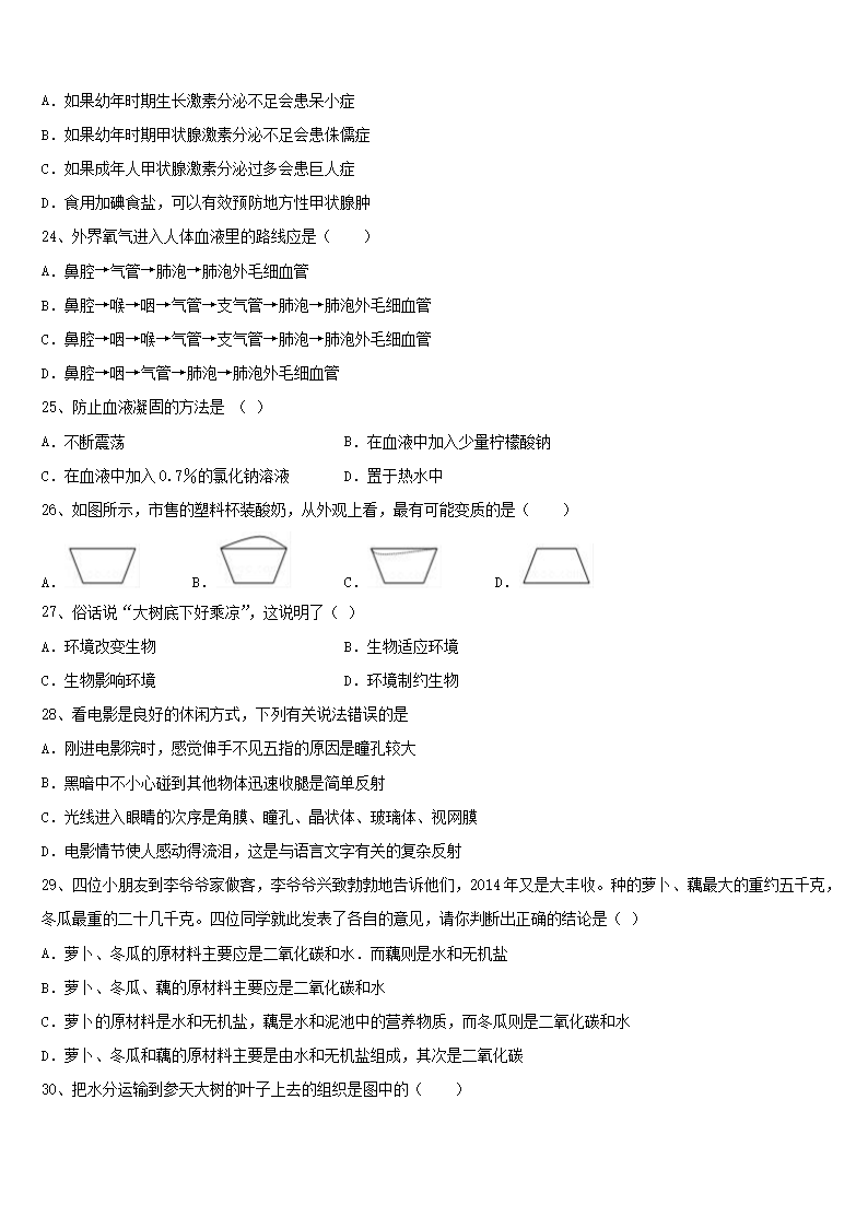 【文档预览】 无忧考网整理发布2024年贵州省中考生物全真模拟试卷及答案(Word版),前五页预览如下: