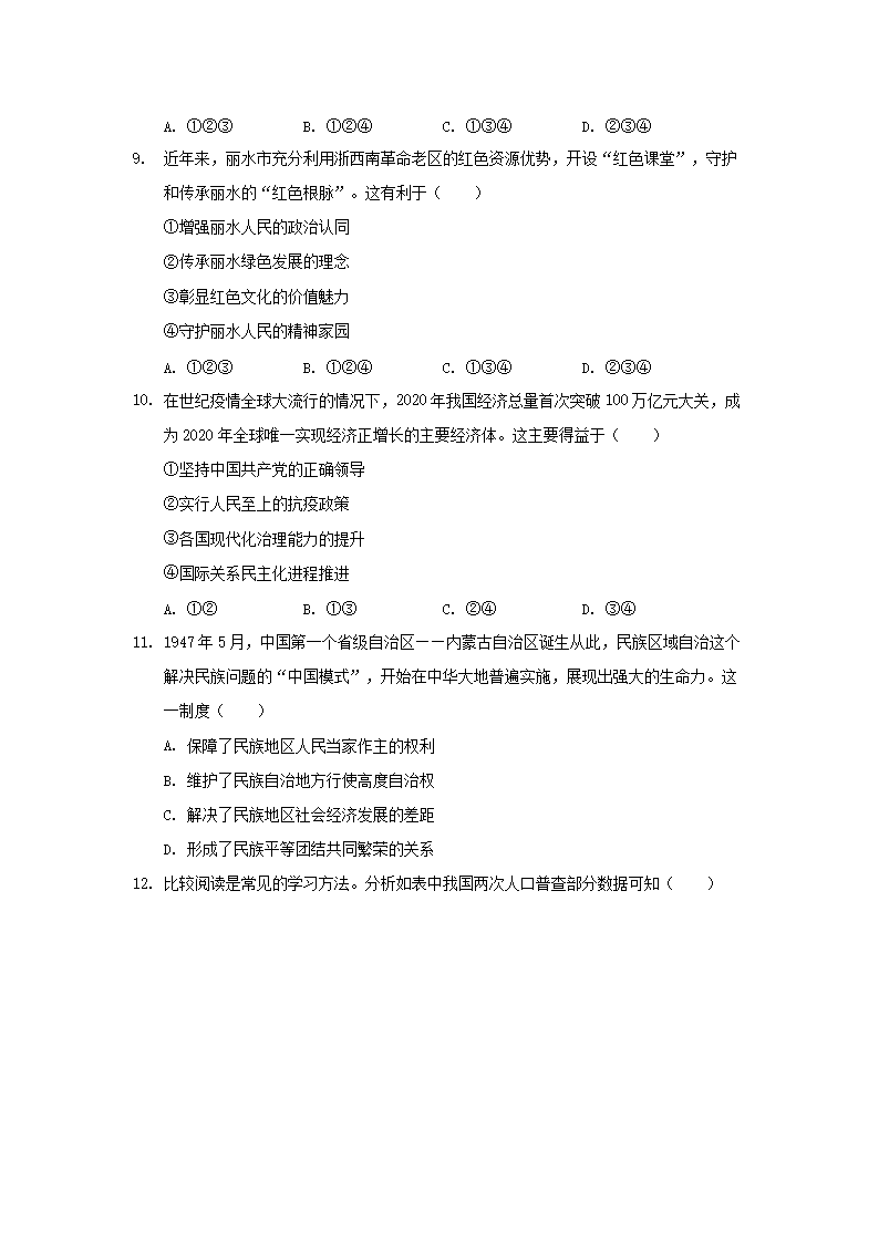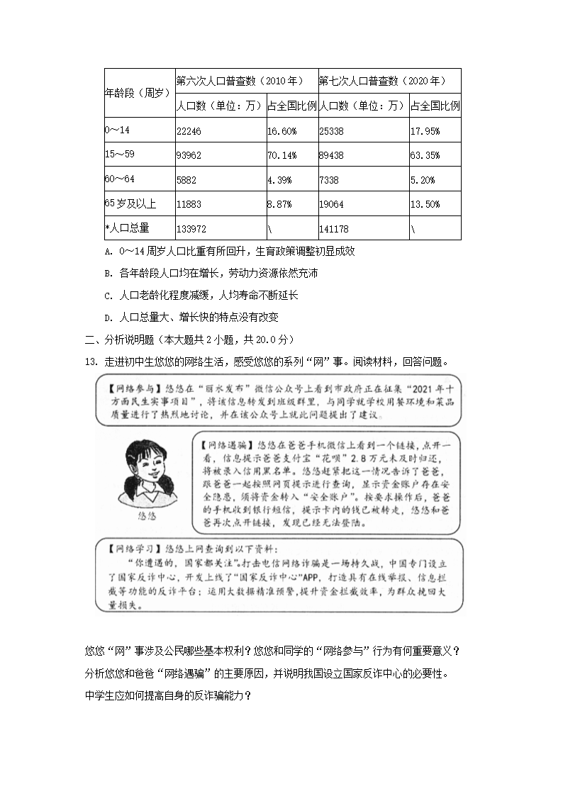 【文档名称】 2021年浙江丽水中考道德与法治真题及答案(Word版).doc