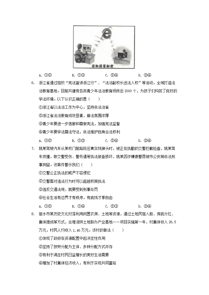 【文档预览】 无忧考网整理发布2021年浙江丽水中考道德与法治真题及答案(Word版),前五页预览如下: