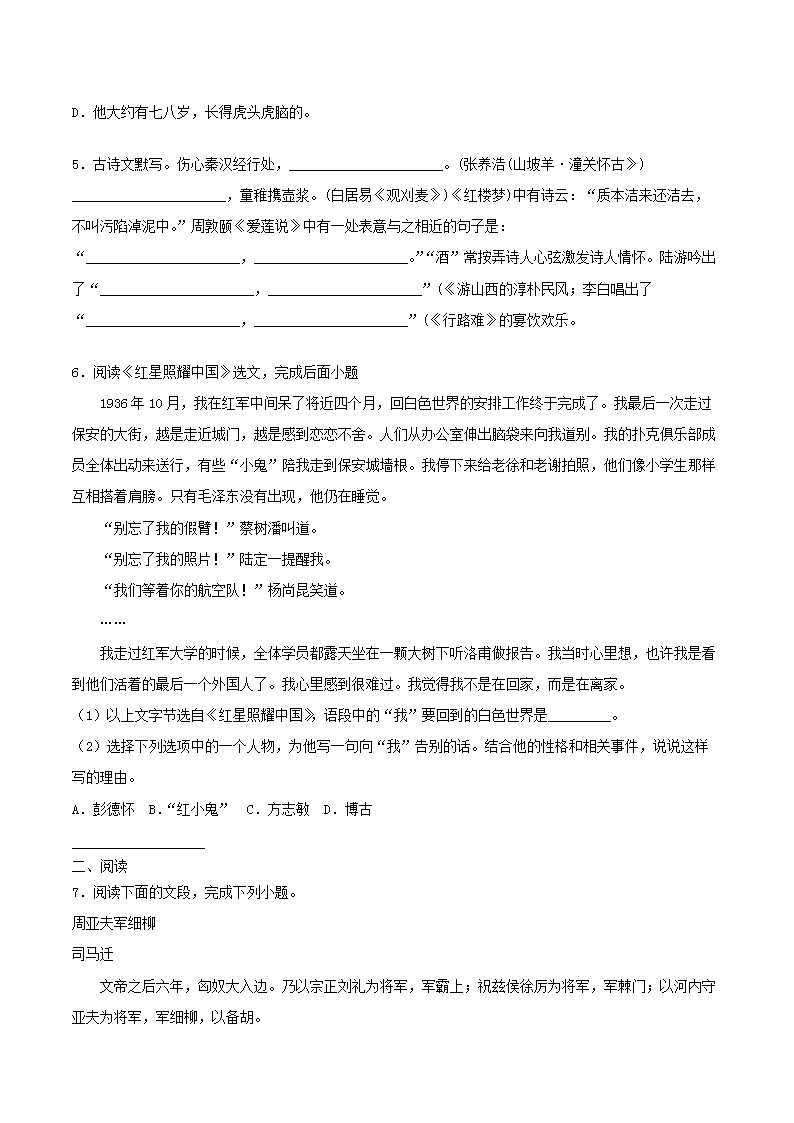 【文档预览】 无忧考网整理发布2024年湖北省武汉市硚口区中考语文模拟试题及答案(Word版),前五页预览如下: