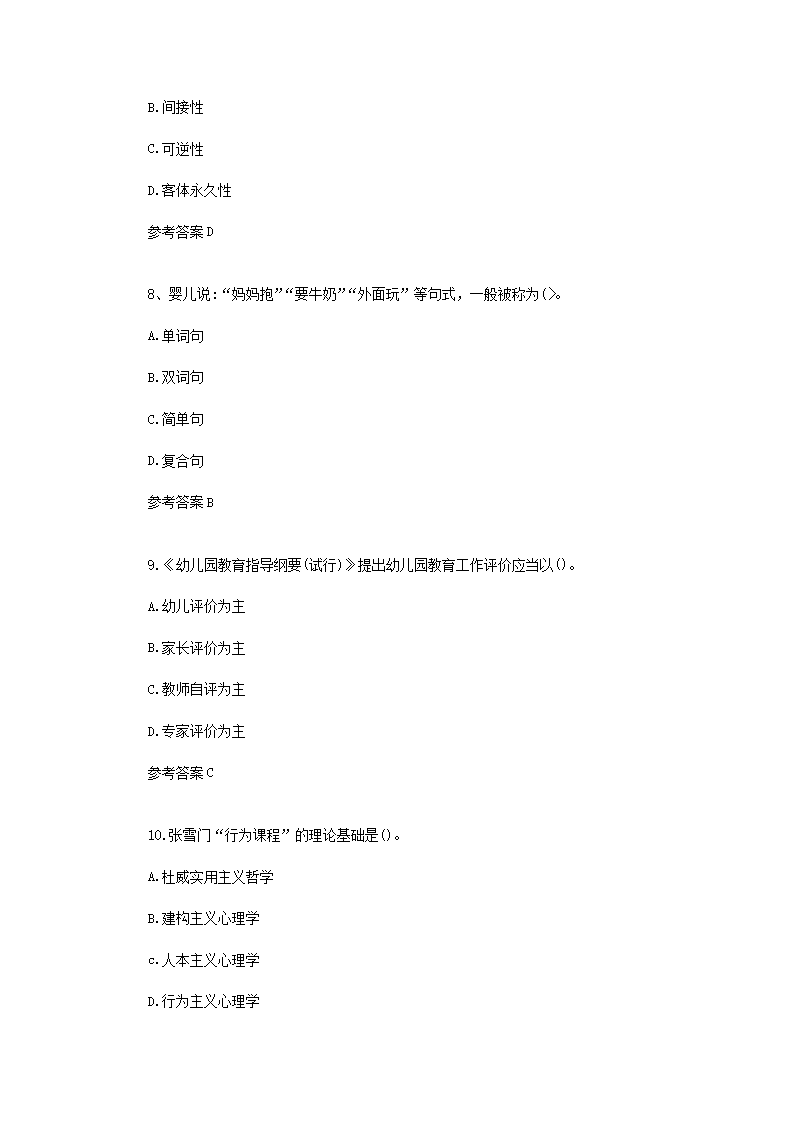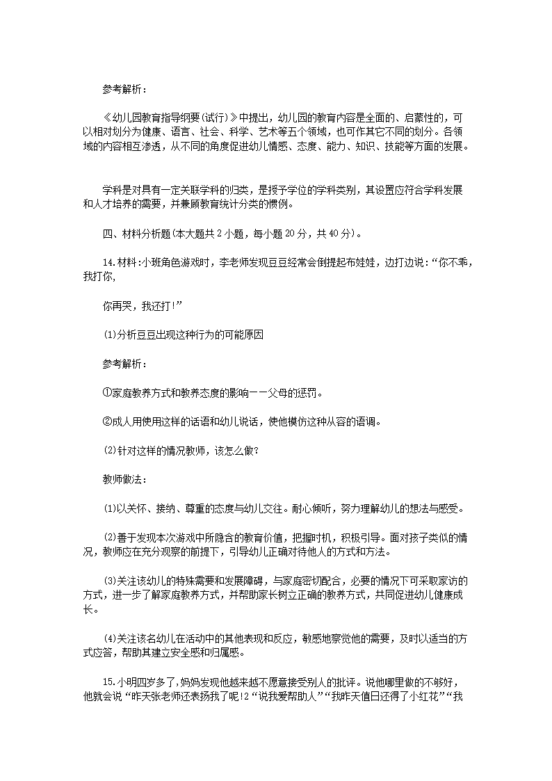 【文档名称】 2023上半年江苏教师资格证幼儿保教知识与能力真题及答案(Word版).doc