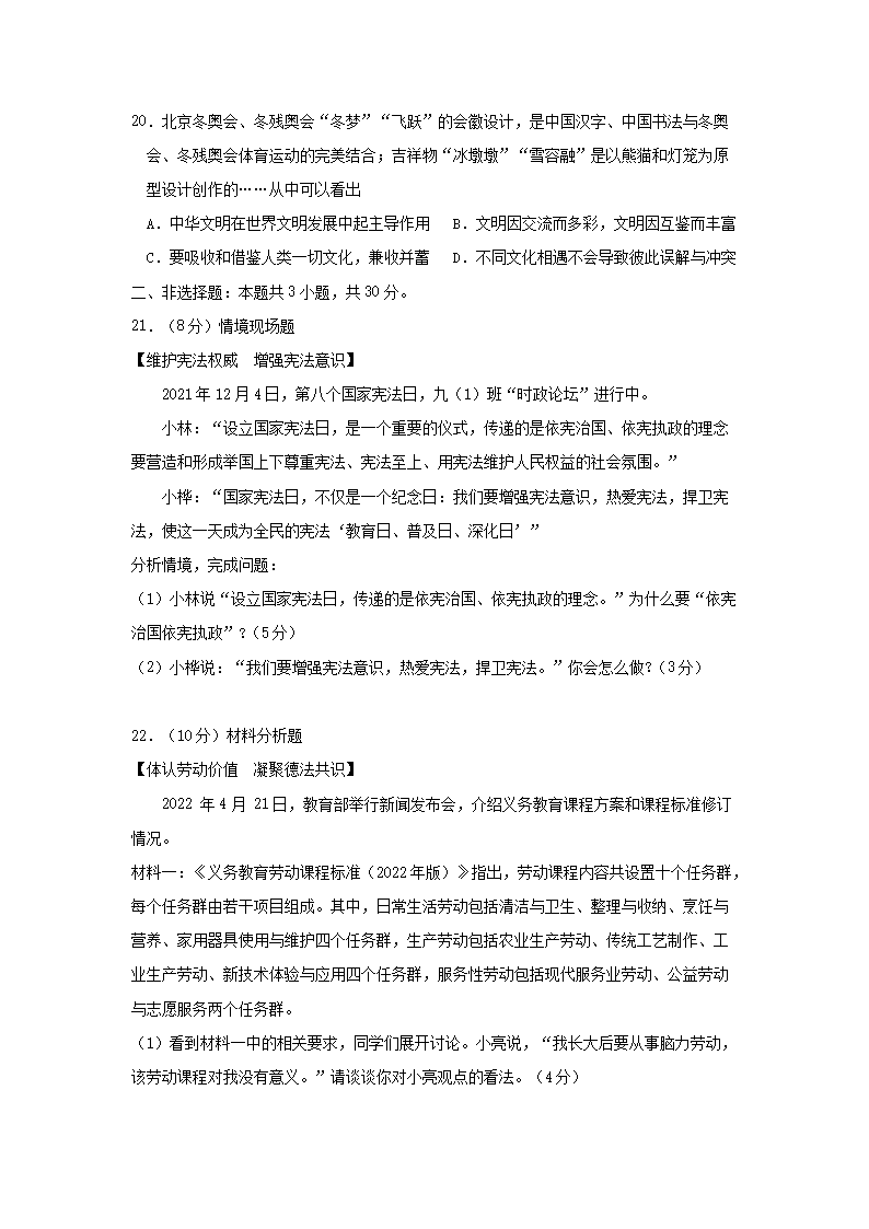 【文档名称】 2022年山东淄博中考道德与法治真题及答案(Word版).doc
