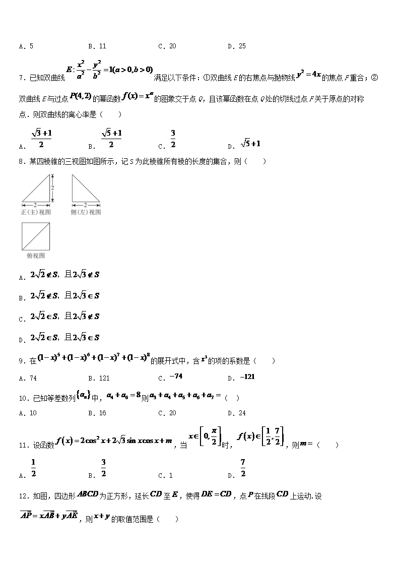 【文档名称】 2024年西藏高考数学全真模拟试题及答案(Word版).doc