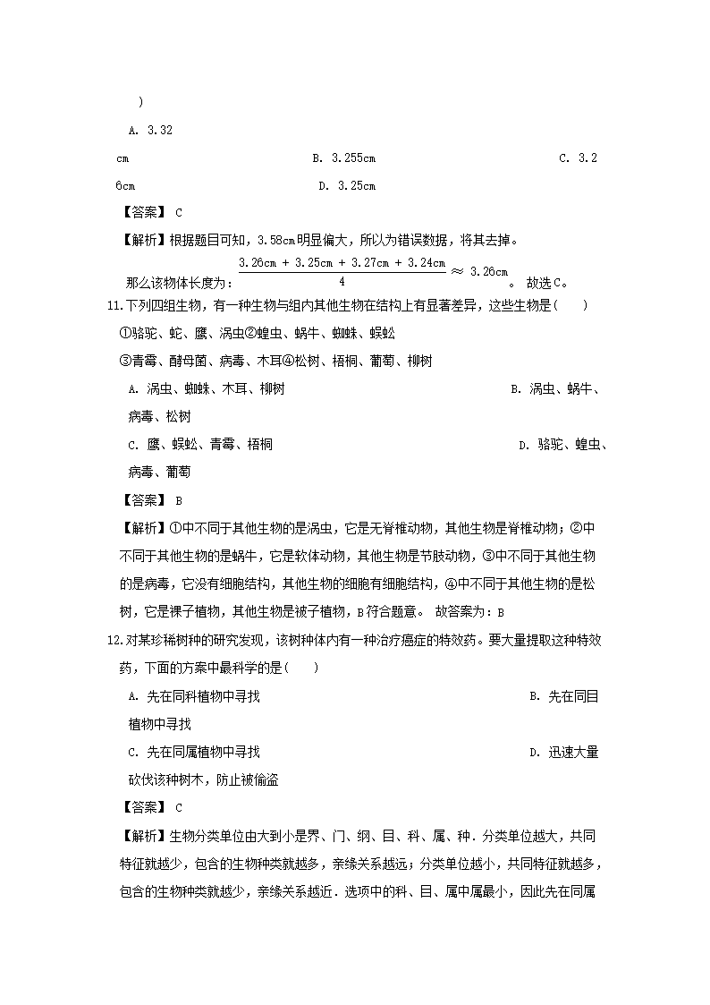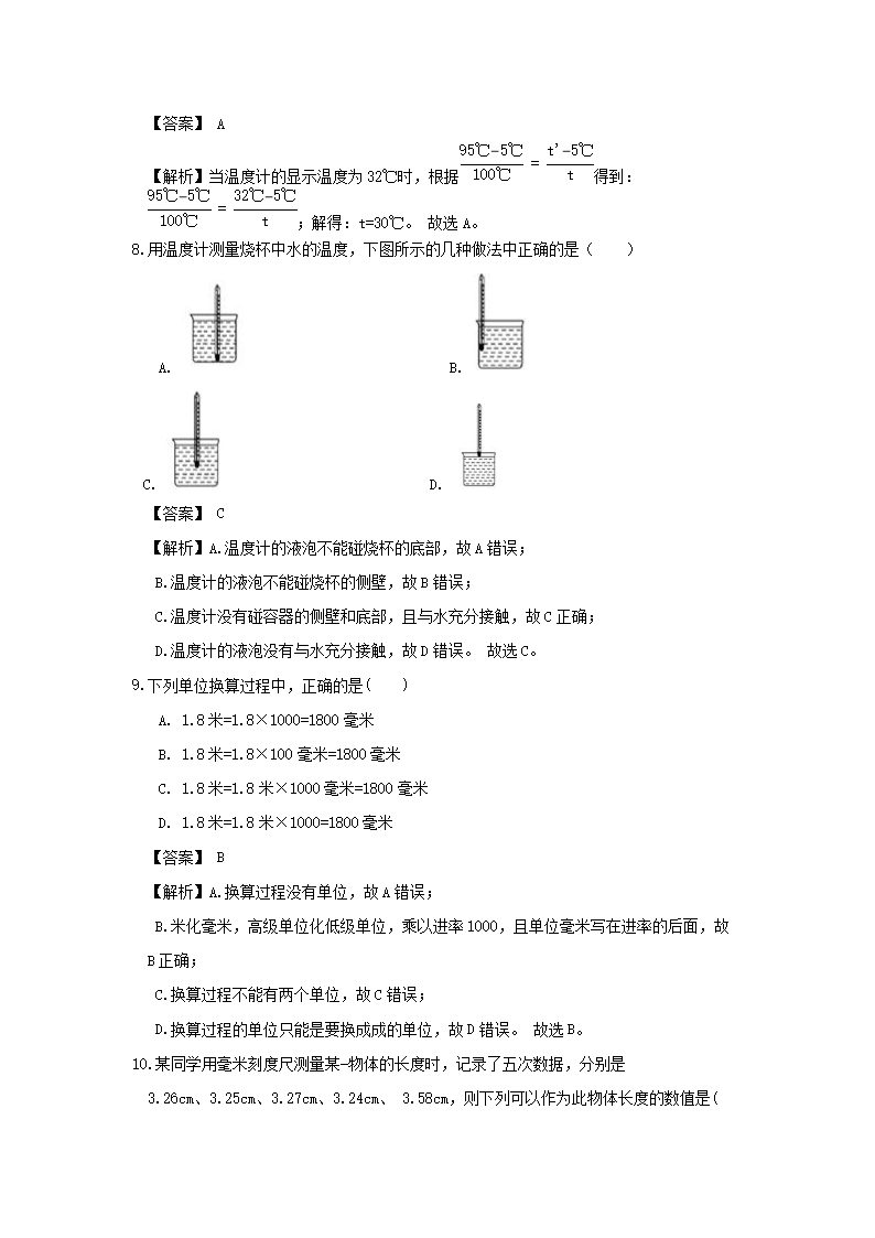 【文档名称】 七年级上册科学期中模拟试卷及答案浙教版(Word版).doc
