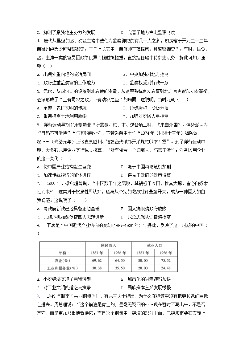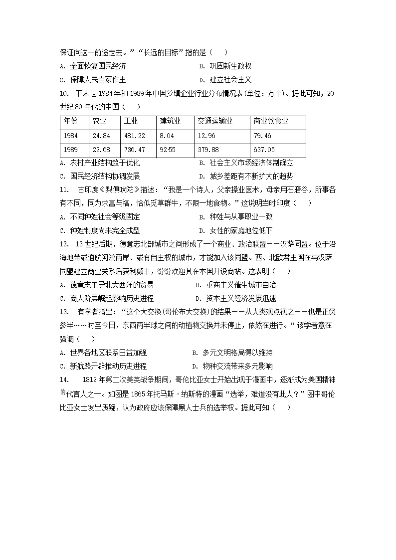 【文档名称】 2024年河北高考历史模拟试卷及答案(Word版).doc