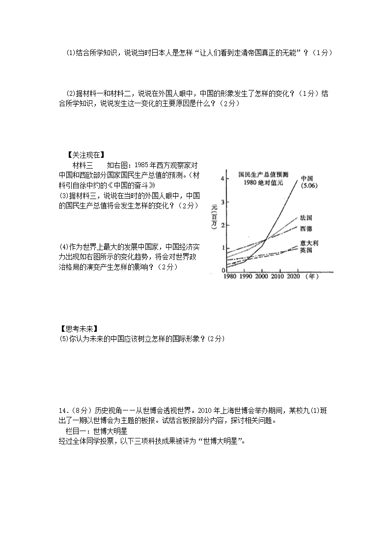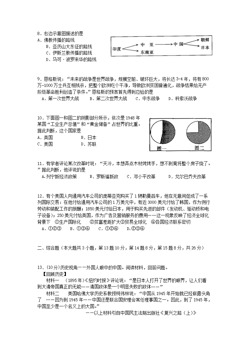 【文档名称】 2010年江西上饶中考历史真题及答案(Word版).doc