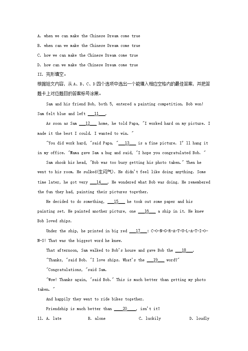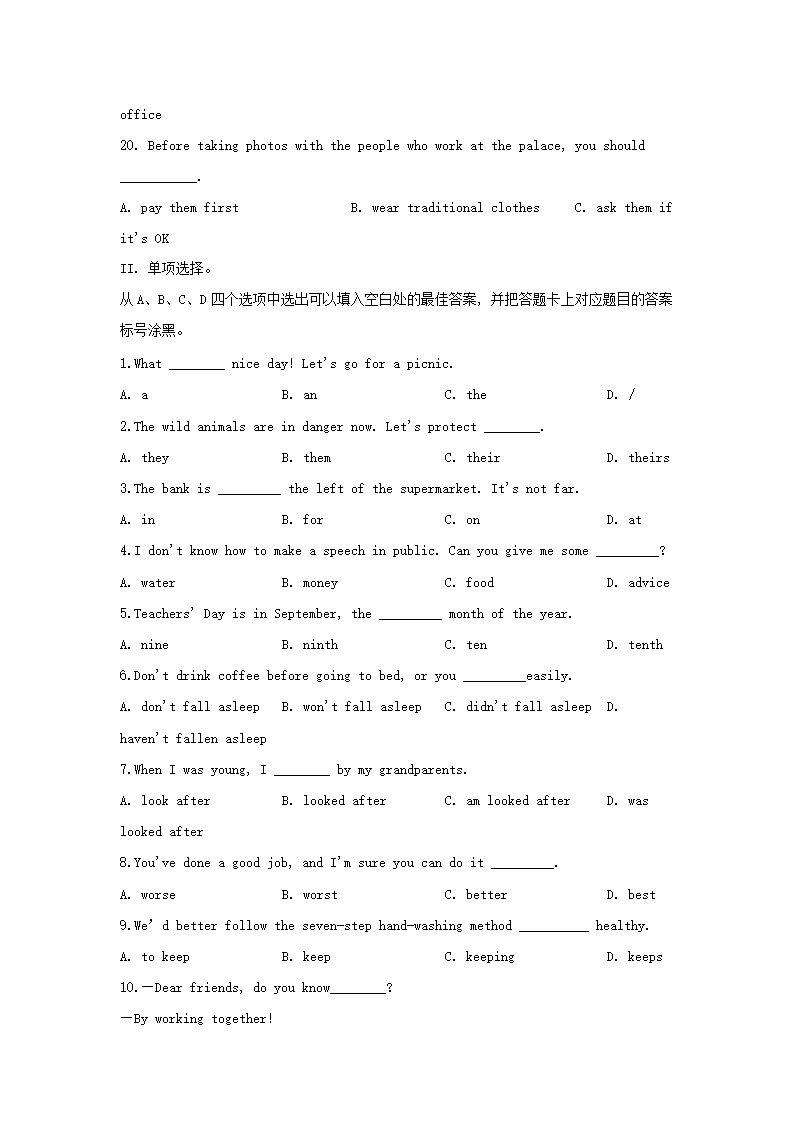 【文档名称】 2020年重庆北碚中考英语真题及答案B卷(Word版).doc
