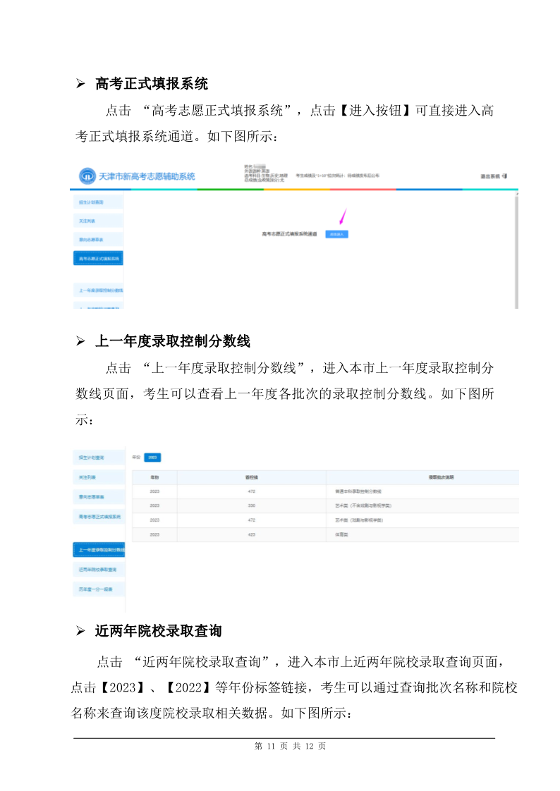“2024年天津河北区新高考志愿辅助系统”可以起到辅助查询往年数据、生成意向志愿草表等作用,但不能进行填报志愿。在填报志愿期间,考生须登录“天津市普通高考志愿网上填报系统”,按照《2024年普通高校在津招生计划》的要求,根据《普通高考志愿网上填报系统使用说明》的提示进行填报。