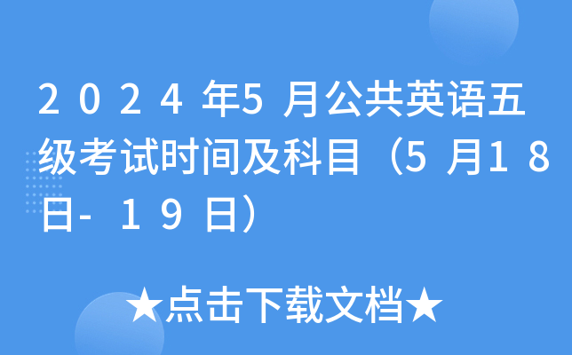 2024年5月公共英语五级考试时间:5月18日-19日,具体开考时间及科目如下: