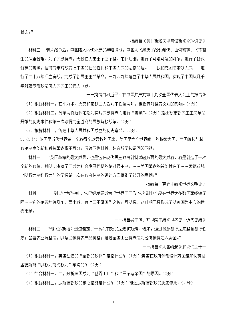 【文档预览】 无忧考网整理发布2019年甘肃白银中考历史真题及答案(Word版),前五页预览如下: