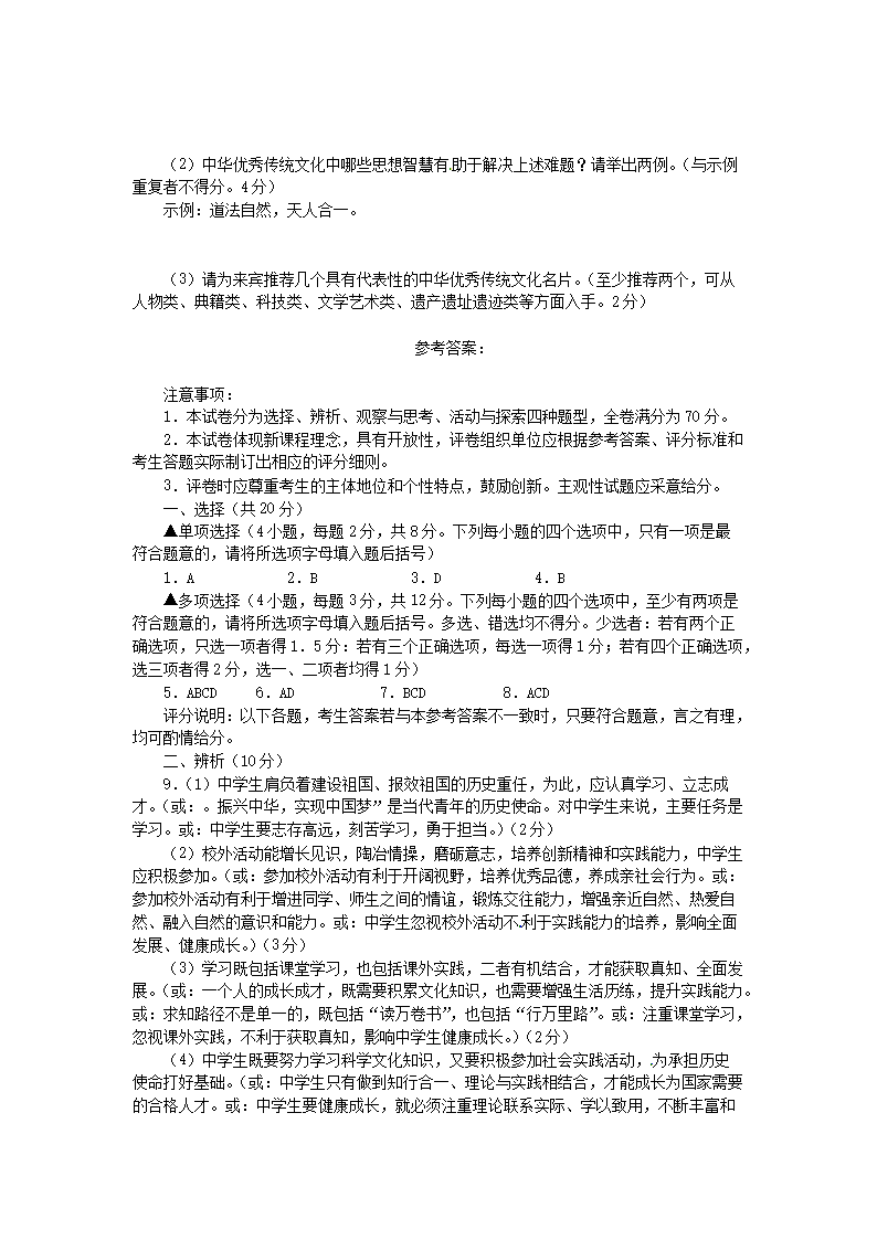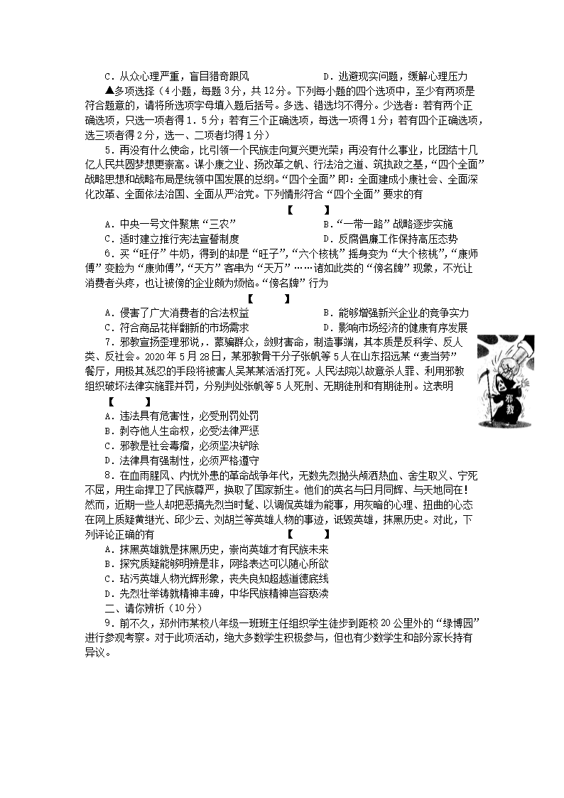 【文档名称】 2020河南新乡中考道德与法治真题及答案(Word版).doc