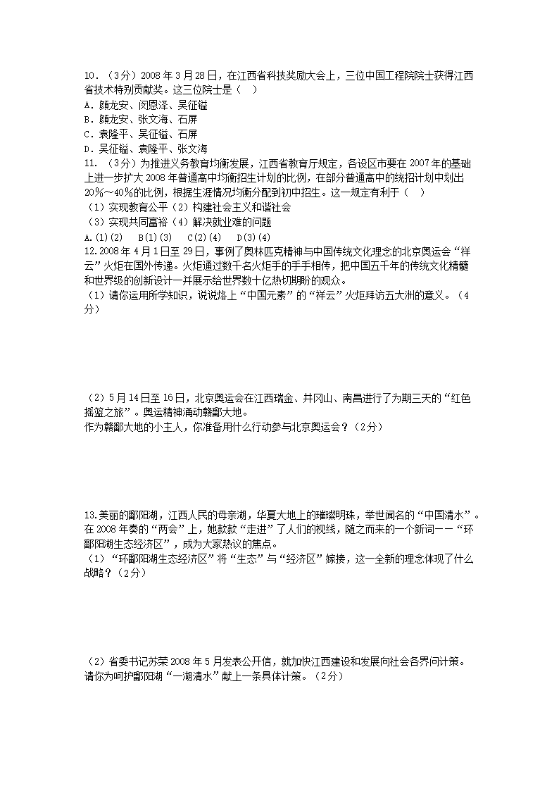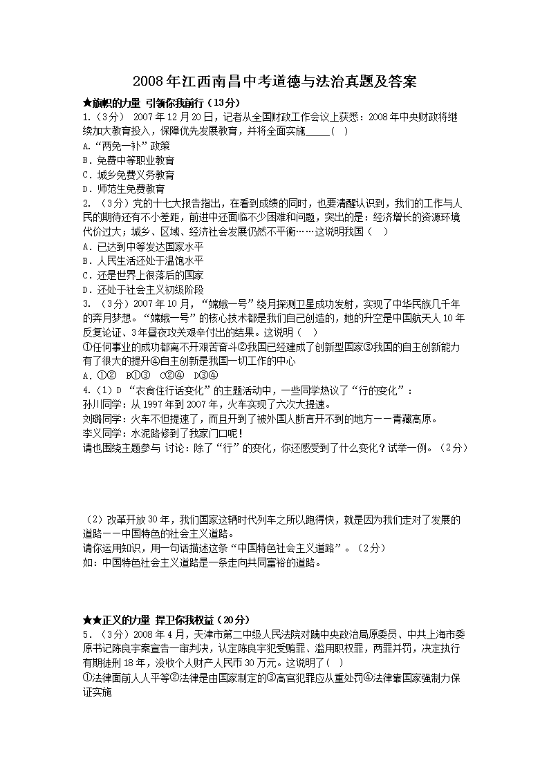 【文档名称】 2008年江西南昌中考道德与法治真题及答案(Word版).doc